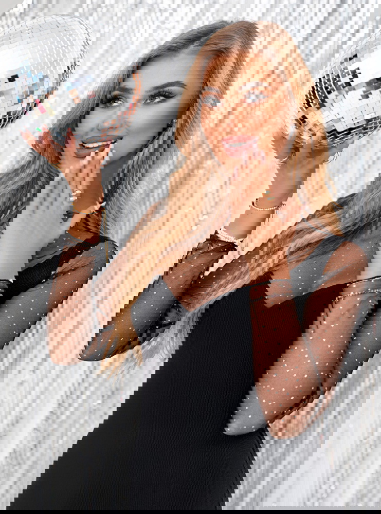 Modelka prezentuje produkty o rozmiarach S/M