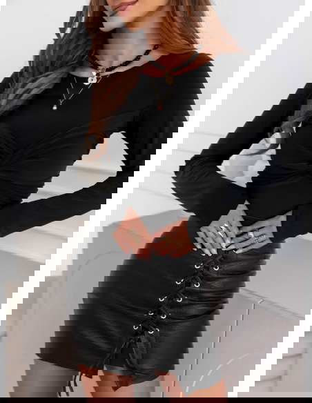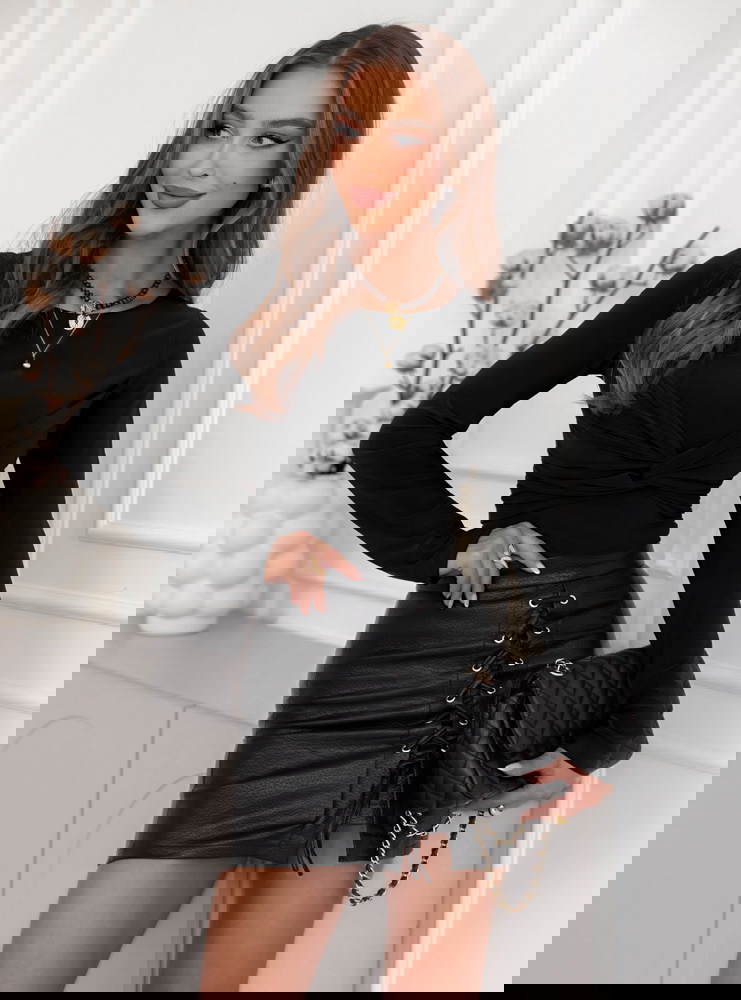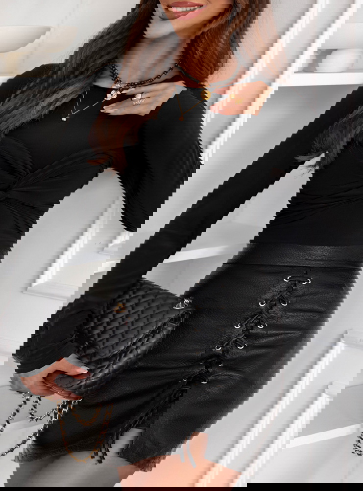 Czarna dopasowana bluzka Barretta to połączenie klasyki i nowoczesności w najlepszym wydaniu. Czarny kolor nadaje jej elegancji, a przeplot z przodu dodaje wyjątkowego charakteru. Dopasowany krój podkreśla sylwetkę, jednocześnie zachowując subtelny, kobiecy styl.
