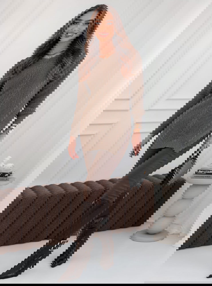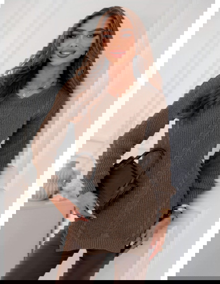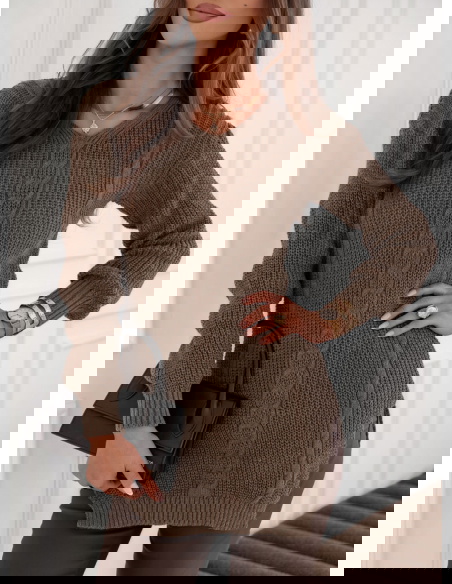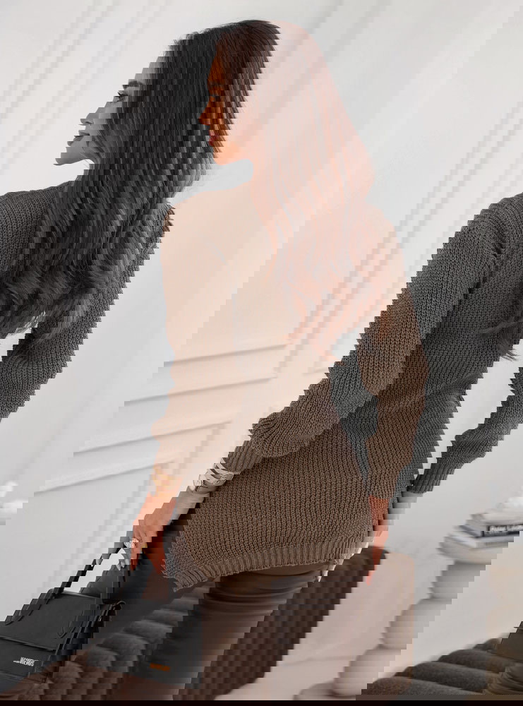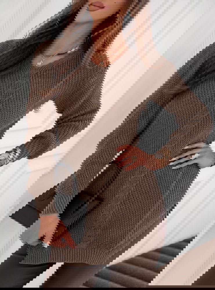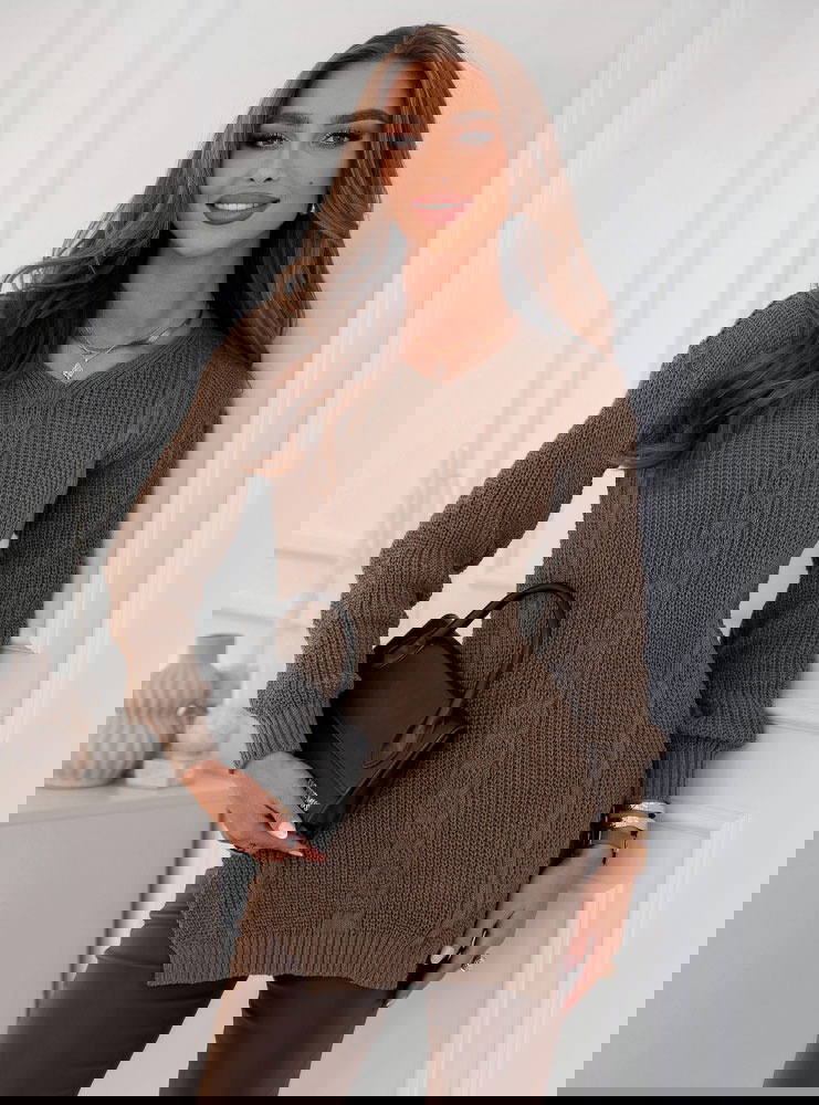 Czekoladowy sweter z ozdobnym splotem Mikkah