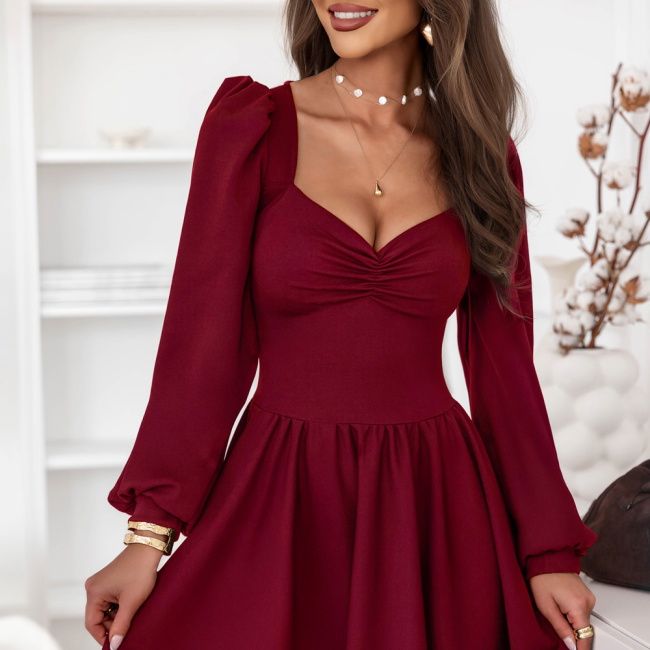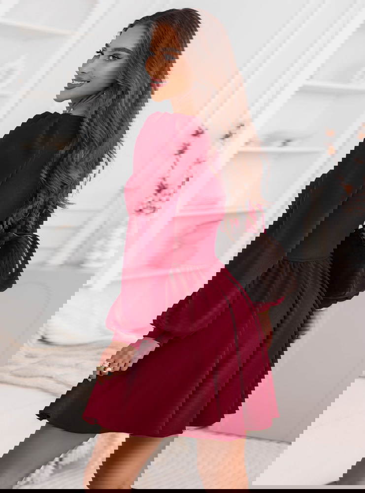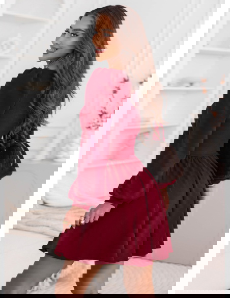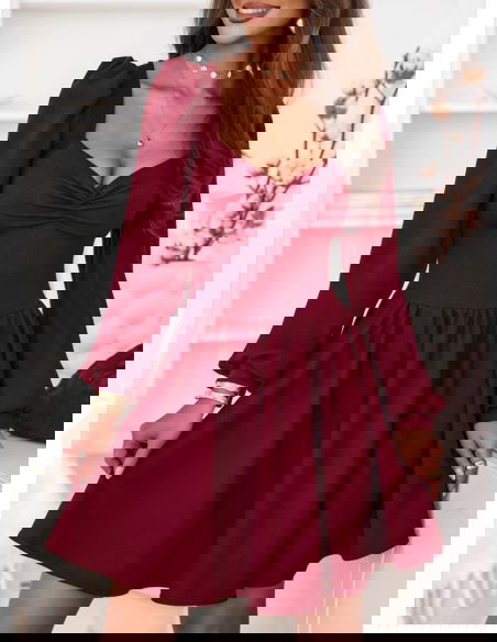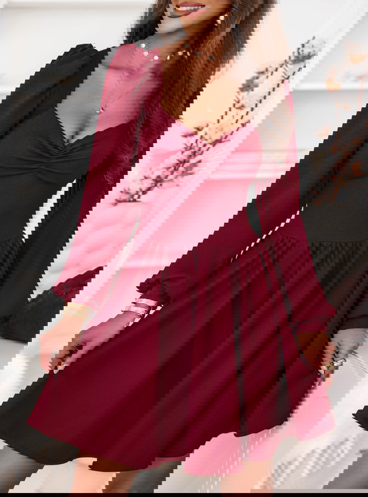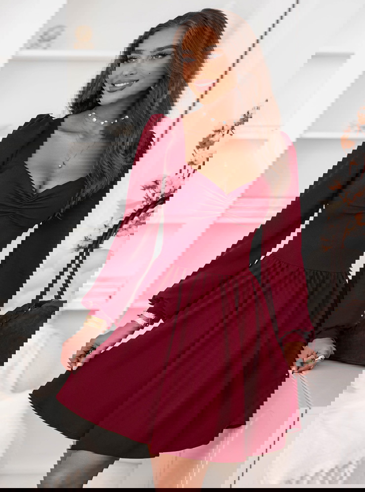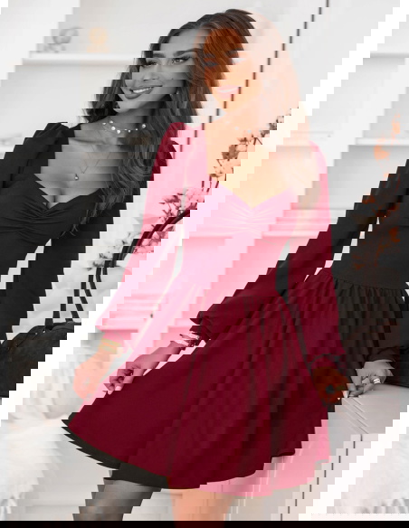 Bordowa sukienka z marszczeniem na dekolcie Davitah
