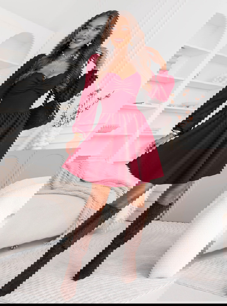 Bordowa sukienka z marszczeniem na dekolcie Davitah to kwintesencja kobiecego stylu i subtelnej elegancji. Jej głęboki, szlachetny odcień przyciąga wzrok i doskonale wpisuje się w jesienno-zimowe trendy. To model, który łączy w sobie delikatność z klasycznym wdziękiem. Dekolt z subtelnym marszczeniem pięknie podkreśla kobiecą sylwetkę i dodaje sukience romantycznego charakteru. Lekko rozkloszowany dół nadaje jej lekkości i sprawia, że całość wygląda niezwykle zwiewnie. Długie rękawy z delikatnym zakończeniem tworzą elegancki, zrównoważony kontrast do dopasowanej góry. To sukienka, która doskonale podkreśla figurę, a jednocześnie zapewnia komfort i swobodę ruchów. Idealna dla kobiet, które lubią wyglądać kobieco, ale z klasą. Bordowy kolor wprowadza do stylizacji ciepło i ponadczasową elegancję. To propozycja, która sprawdzi się niezależnie od okazji – zawsze wygląda szykownie i zmysłowo.