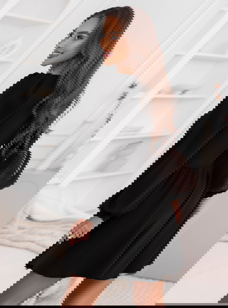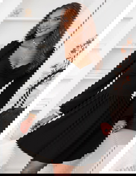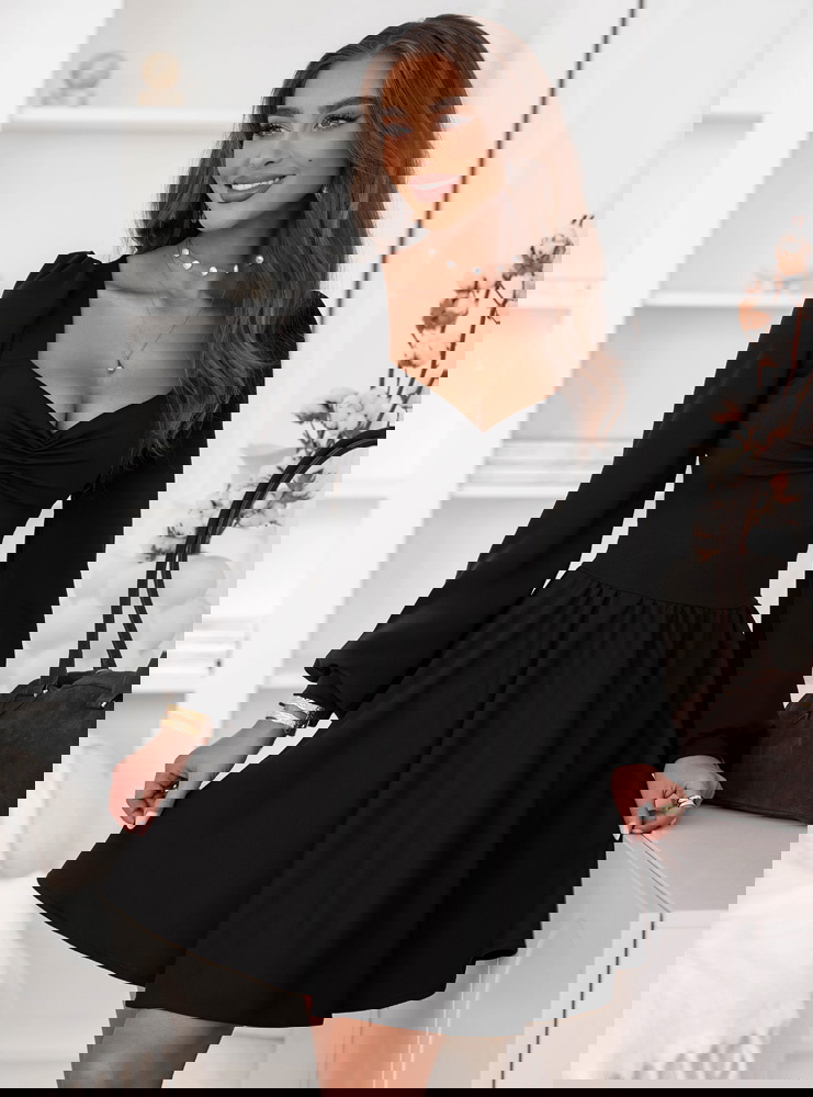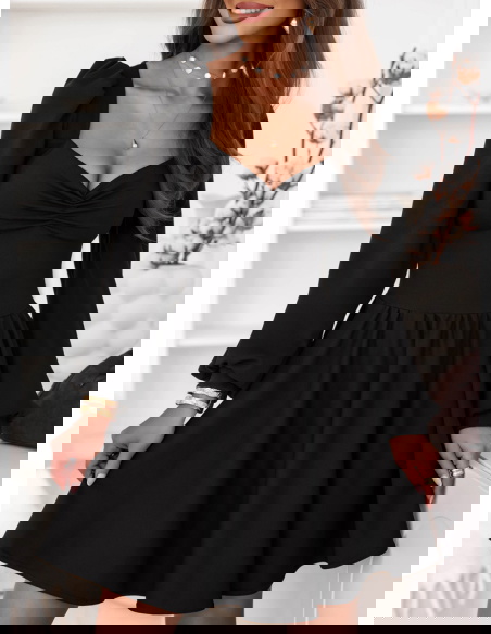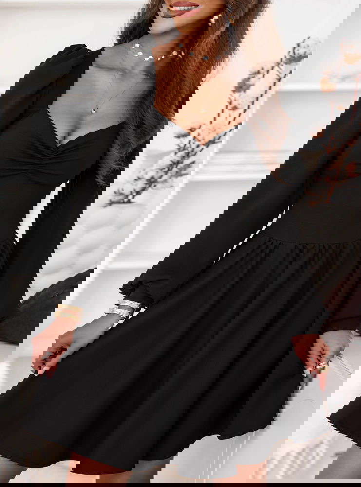 Czarna sukienka z marszczeniem na dekolcie Davitah