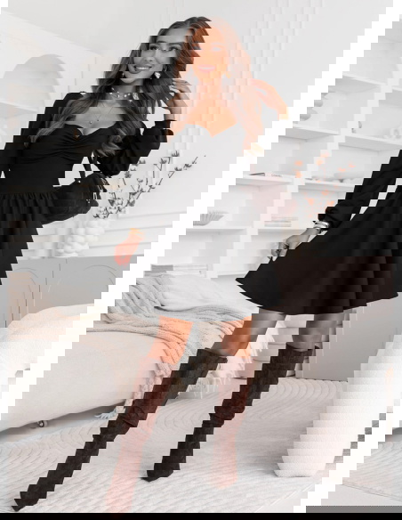 Czarna sukienka z marszczeniem na dekolcie Davitah to propozycja, która łączy w sobie ponadczasową elegancję i subtelną kobiecość. To model, który przyciąga uwagę swoim klasycznym krojem i delikatnymi detalami, tworząc idealną całość. Głęboka czerń podkreśla szyk i sprawia, że sukienka pasuje na wiele okazji. Marszczenie przy dekolcie dodaje jej uroku, jednocześnie pięknie eksponując biust w elegancki sposób. Rozkloszowany dół nadaje stylizacji lekkości, a długie rękawy wprowadzają nutę romantyzmu i finezji. Sukienka doskonale podkreśla talię, tworząc harmonijną, kobiecą sylwetkę. To model, który łączy prostotę z wyrafinowaniem, dzięki czemu zawsze wygląda stylowo. Idealna na sezon jesienny – z botkami, kozakami czy klasycznymi szpilkami stworzy elegancki, modny look. To sukienka, w której każda kobieta poczuje się wyjątkowo i z klasą.