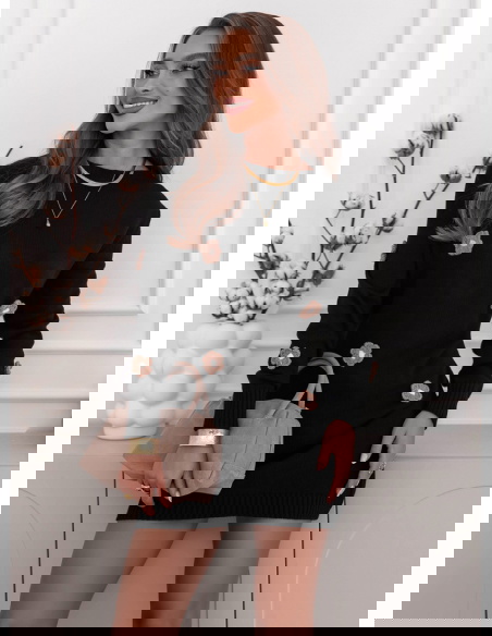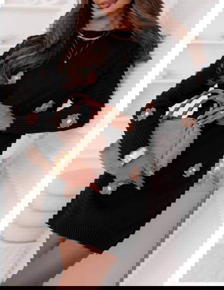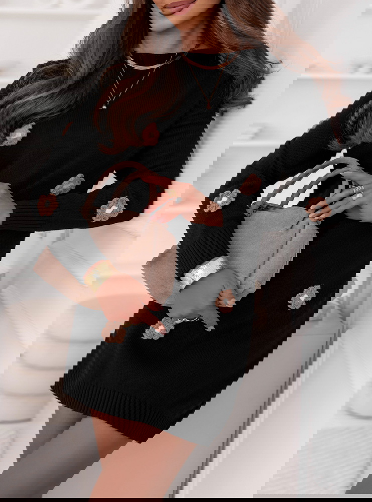 Czarna swetrowa sukienka z ozdobnymi kwiatkami Gotzonee