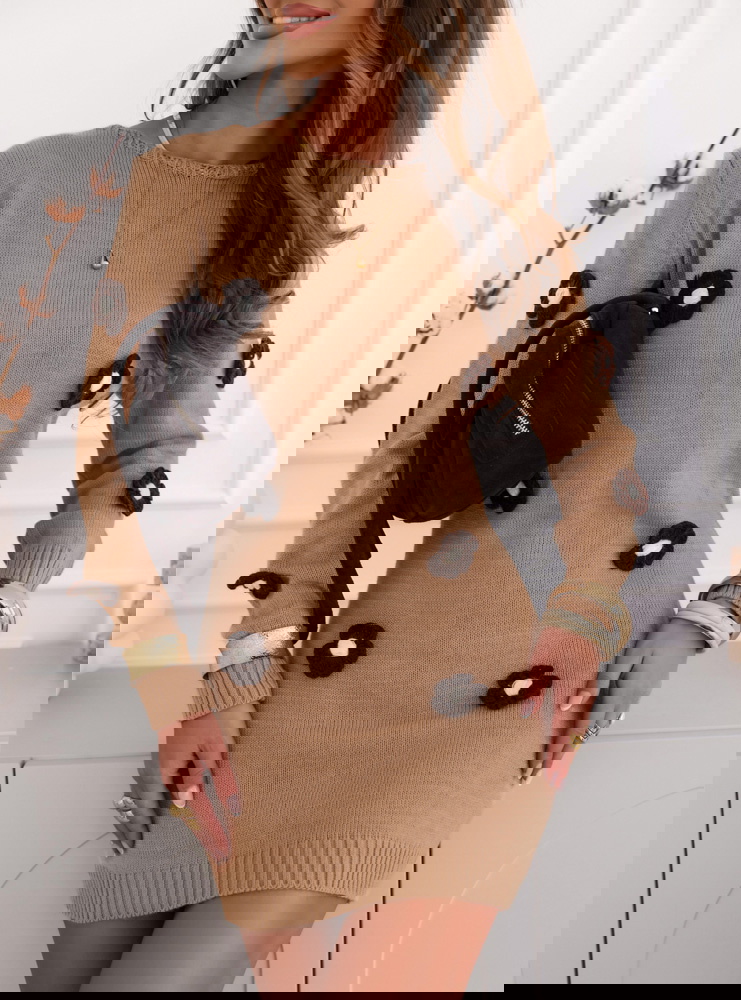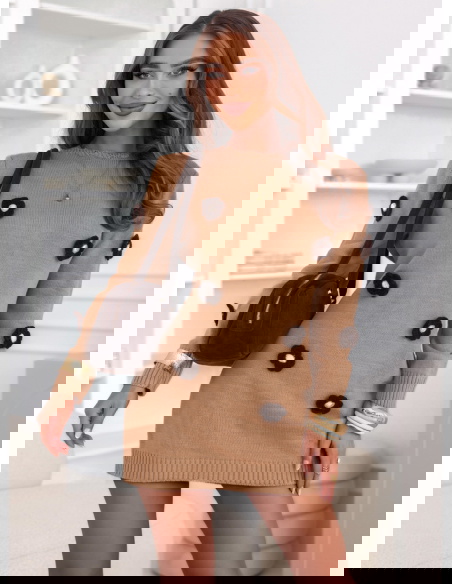 Swetrowa sukienka z ozdobnymi kwiatkami Gotzonee - mocha mousse