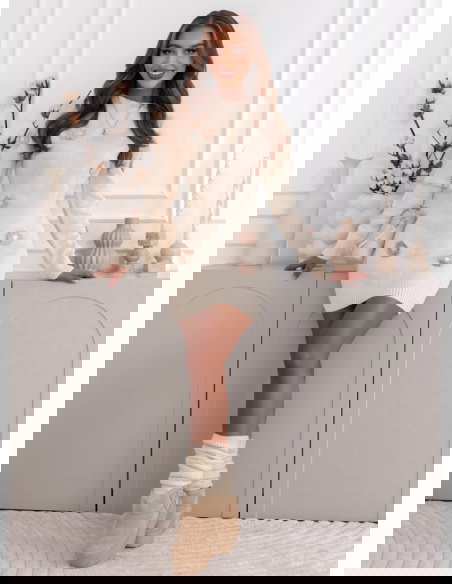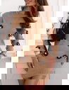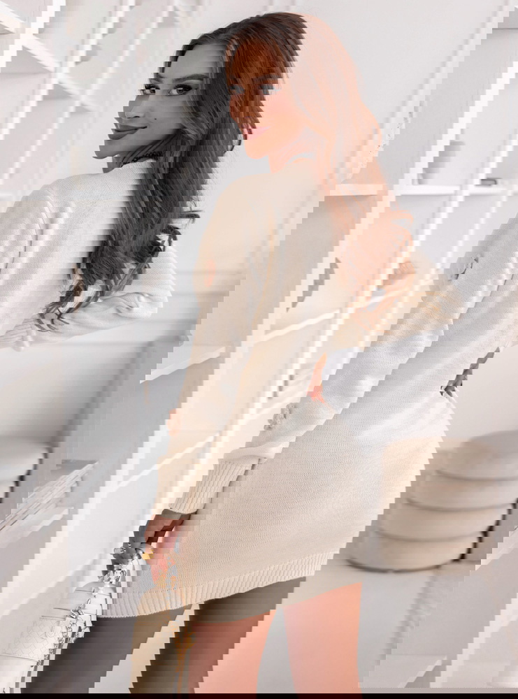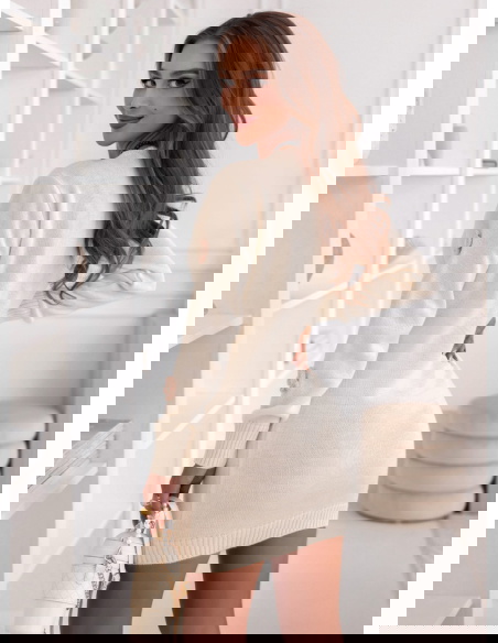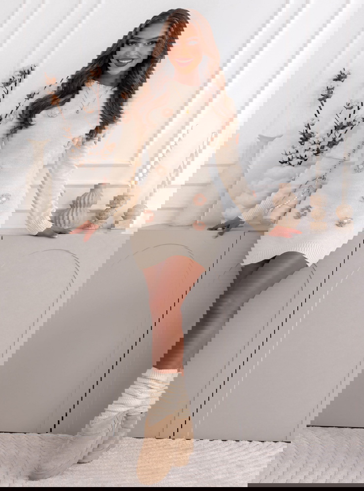 Swetrowa sukienka z ozdobnymi kwiatkami Gotzonee - ecru to kwintesencja delikatności i kobiecego uroku. To model, który od razu przyciąga wzrok subtelnymi detalami i ciepłym, kremowym kolorem. Jej dopasowany krój pięknie podkreśla sylwetkę, zachowując przy tym przytulny, jesienny charakter. Ozdobne kwiatki rozmieszczone na całej powierzchni sukienki dodają jej romantycznego i wyjątkowego wyrazu. Długie rękawy oraz klasyczne wykończenie przy dekolcie sprawiają, że całość prezentuje się elegancko i z klasą. Sukienka łączy w sobie kobiecość, prostotę i urok stylu casual, dzięki czemu jest doskonałym wyborem na chłodniejsze dni. To model, który wprowadza do stylizacji lekkość i świeżość, a jednocześnie pozostaje niezwykle komfortowy w noszeniu. W jesiennym wydaniu z botkami lub kozakami tworzy przytulny, ale stylowy look. Swetrowa sukienka w odcieniu ecru to idealny balans między elegancją a codzienną wygodą.