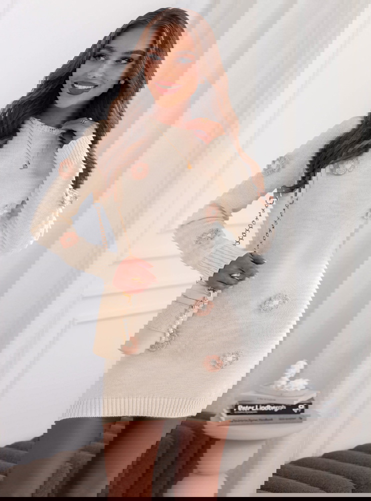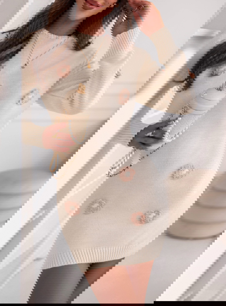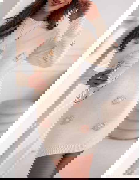 Swetrowa sukienka z ozdobnymi kwiatkami Gotzonee - ecru