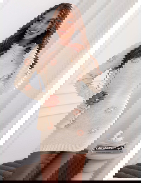 Swetrowa sukienka z ozdobnymi kwiatkami Gotzonee - ecru to doskonały wybór na wiele jesiennych i zimowych okazji. Idealnie sprawdzi się na co dzień, do pracy, na spacer czy spotkanie ze znajomymi.
