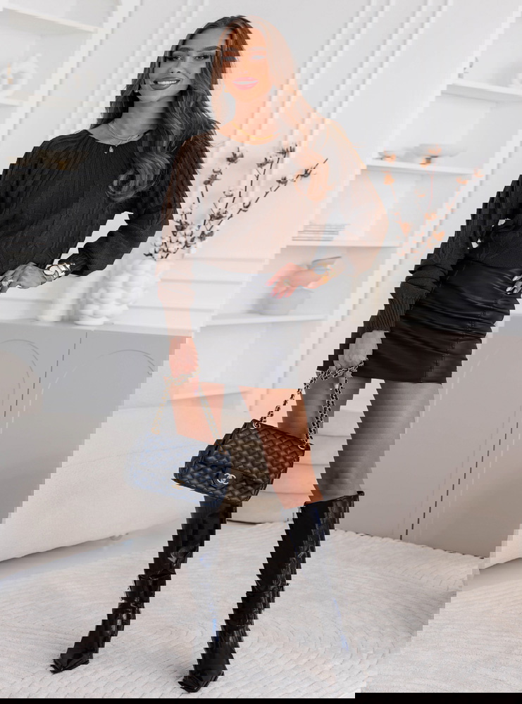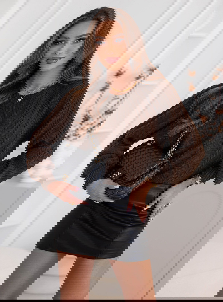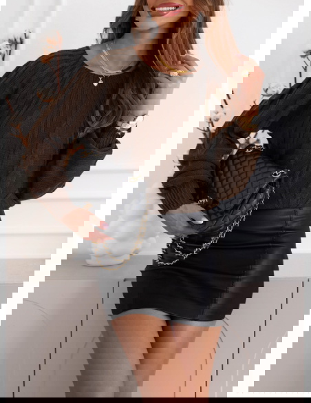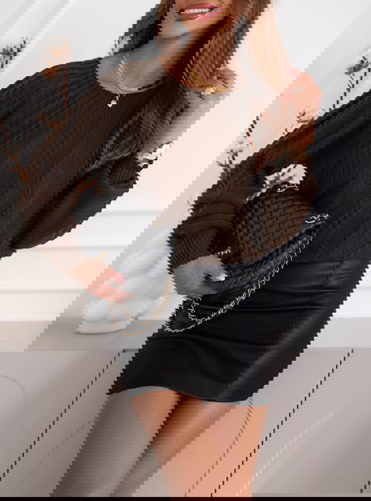Czekoladowy sweter z warkoczowymi splotami Kourtney to kwintesencja jesiennego stylu – ciepły, przytulny i jednocześnie niezwykle kobiecy. Jego głęboki, czekoladowy odcień wprowadza do stylizacji nutę elegancji, a charakterystyczny splot dodaje mu wyjątkowego uroku. To model, który doskonale łączy klasykę z modnym, nowoczesnym wyglądem. Miękka faktura i luźniejszy krój sprawiają, że noszenie go to czysta przyjemność. Świetnie układa się na sylwetce, tworząc delikatnie swobodny, ale wciąż bardzo kobiecy efekt. To sweter, który wspaniale podkreśla jesienny klimat – otula ciepłem i prezentuje się niezwykle stylowo. Idealny dla kobiet, które cenią komfort, ale nie chcą rezygnować z elegancji. Jego uniwersalny charakter sprawia, że można go zestawić zarówno z jeansami, jak i dopasowaną spódnicą. Czekoladowy kolor doda Twojej stylizacji głębi i subtelnego wdzięku. To must-have w garderobie każdej miłośniczki klasy i ponadczasowego stylu.