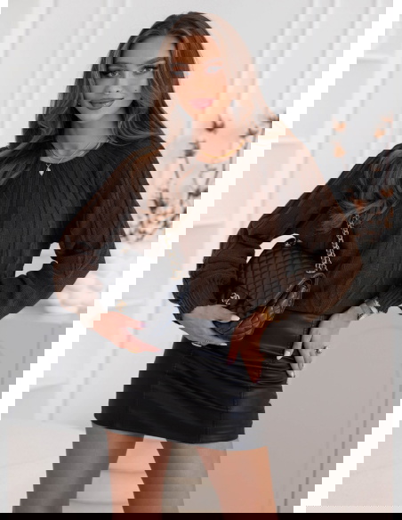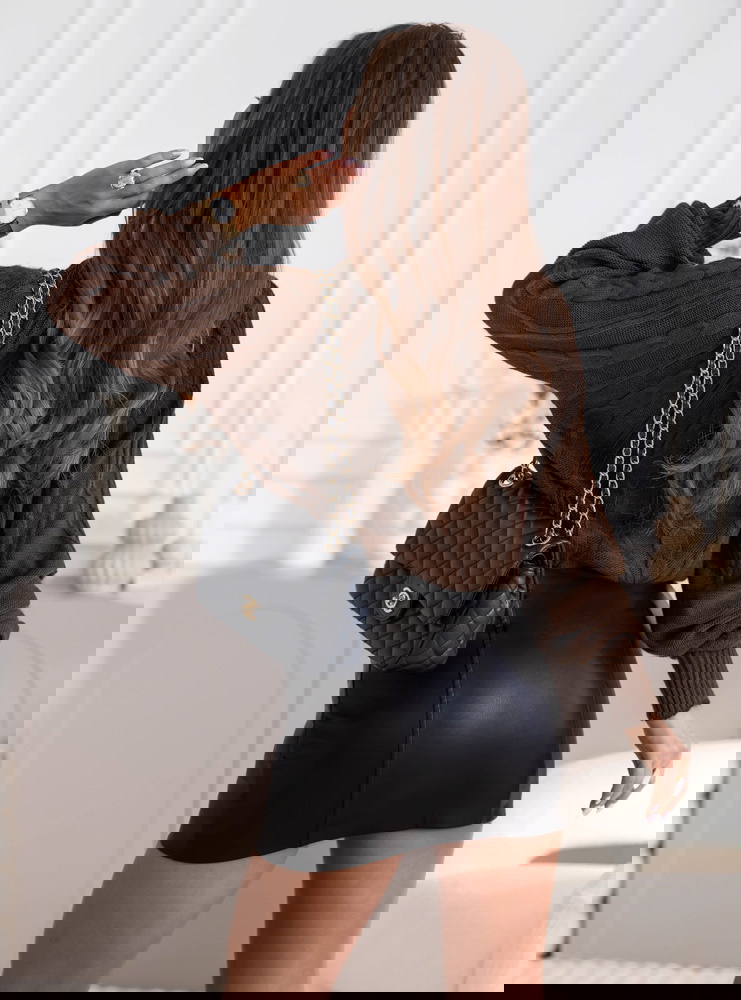 Czekoladowy sweter z warkoczowymi splotami Kourtney