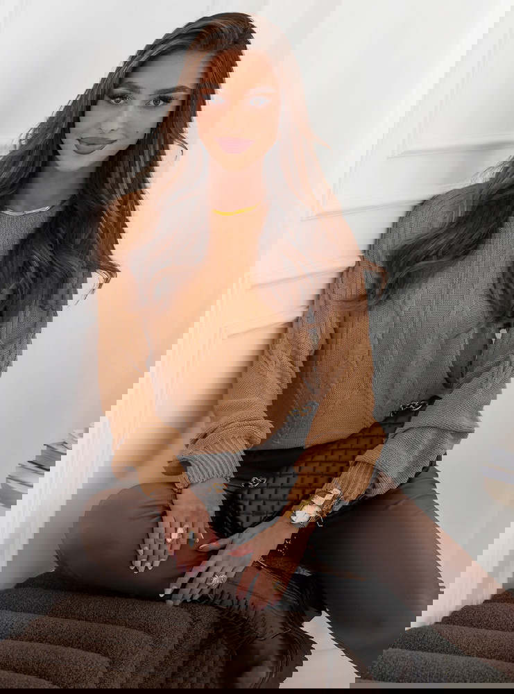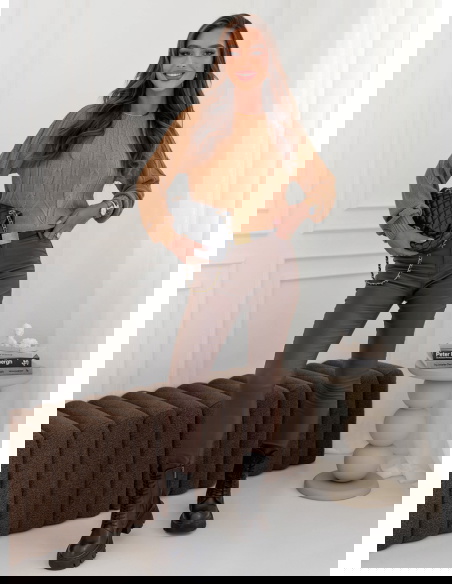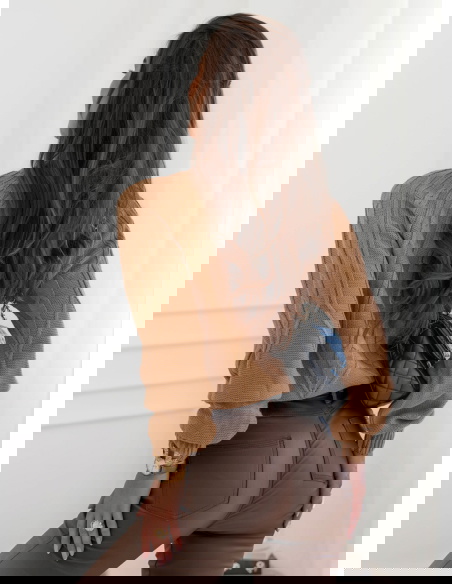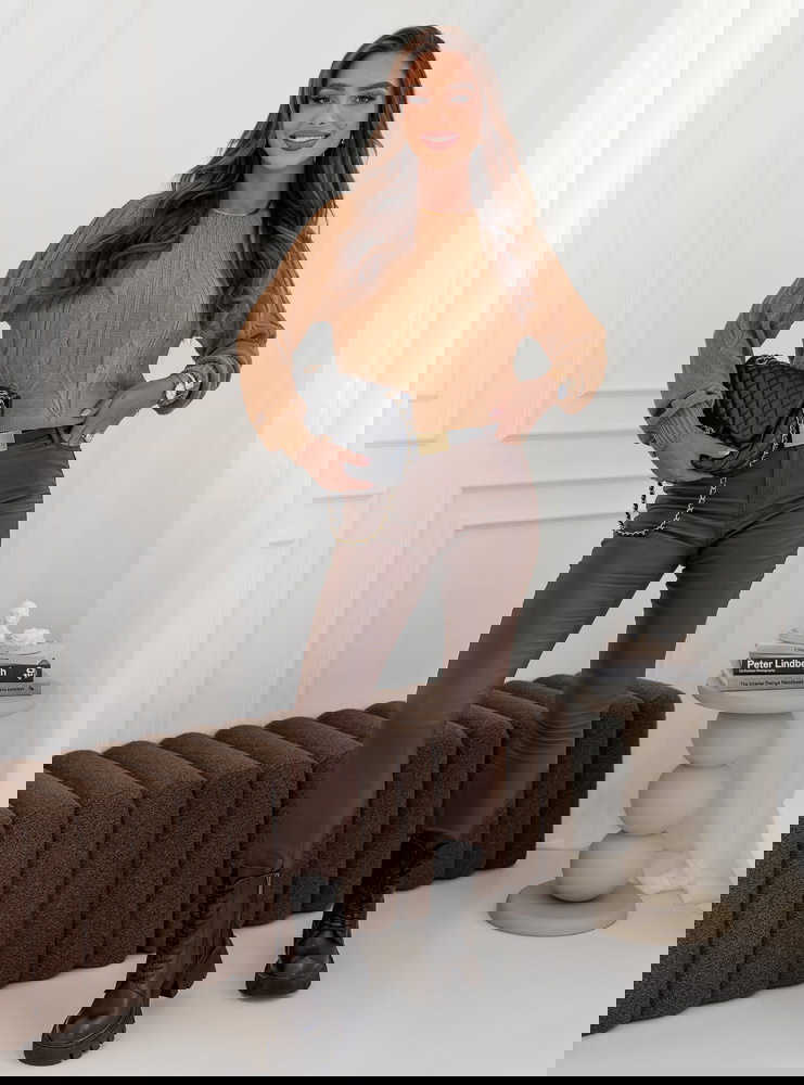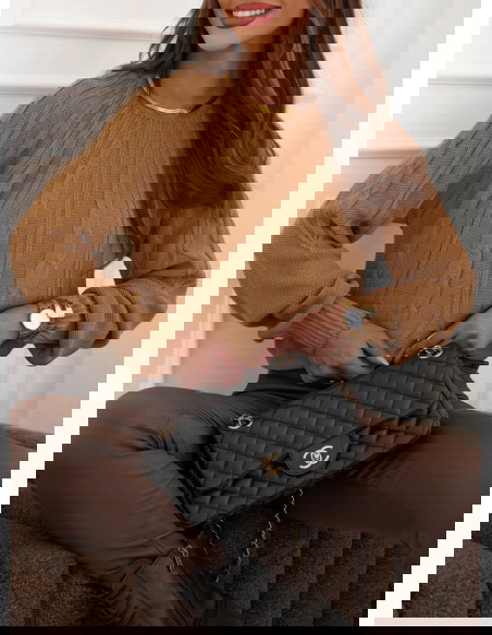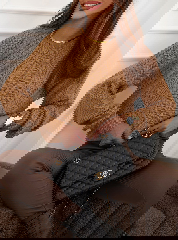 Sweter z warkoczowymi splotami Kourtney - mocha mousse to klasyka w najmodniejszym jesiennym wydaniu. Jego ciepły kolor wprowadza do stylizacji przytulność i elegancję, tworząc idealną bazę dla wielu zestawów. To model, który zachwyca prostotą, ale przyciąga uwagę subtelnymi detalami. Warkoczowy splot dodaje mu charakteru i ponadczasowego uroku, tworząc efekt miękkiej struktury. Luźniejszy krój i obniżona linia ramion nadają mu lekkości i sprawiają, że doskonale dopasowuje się do sylwetki. To idealny wybór na chłodniejsze dni, gdy chcesz wyglądać modnie, a jednocześnie czuć się komfortowo. Mocha mousse to odcień, który pięknie podkreśla urodę i doskonale współgra z jesiennymi barwami — beżami, brązami i złotem. Sweter emanuje naturalnym ciepłem i kobiecym wdziękiem. To propozycja, która nigdy nie wychodzi z mody i sprawdzi się w każdej sytuacji — od codziennych po bardziej eleganckie.
