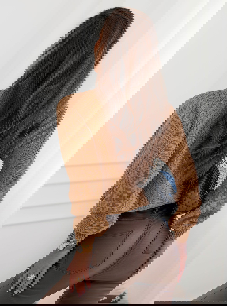 Sweter z warkoczowymi splotami Kourtney - mocha mousse to idealna propozycja na co dzień — do pracy, na spotkanie czy spacer w chłodniejsze dni. Doskonale sprawdzi się także w weekendowych stylizacjach w połączeniu z jeansami, skórzanymi spodniami lub spódnicą.