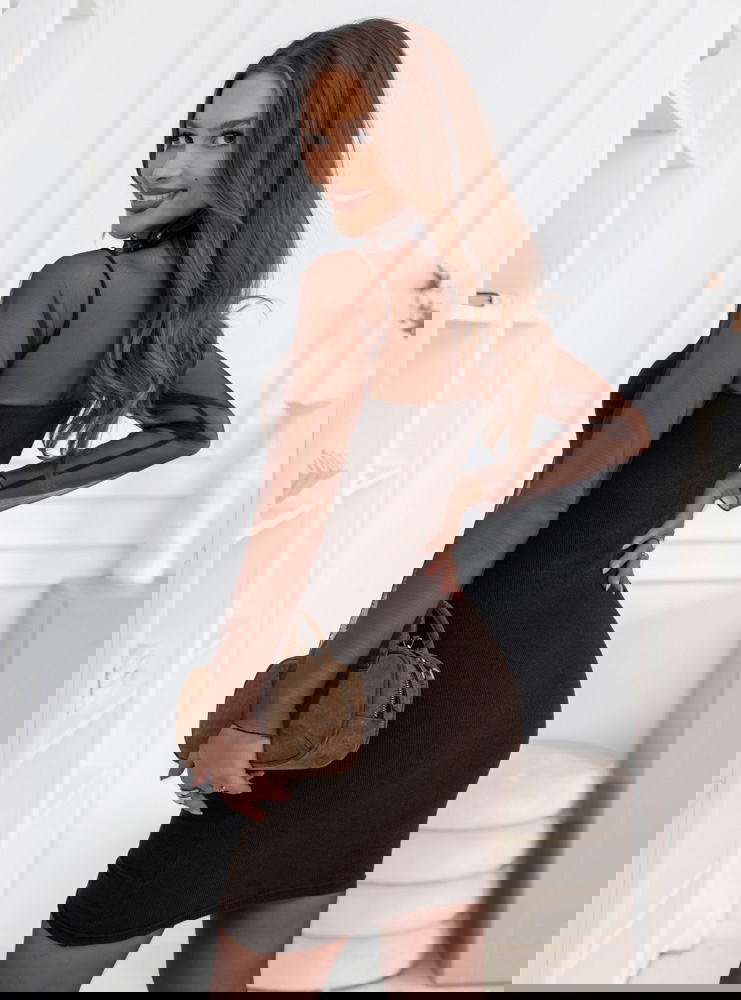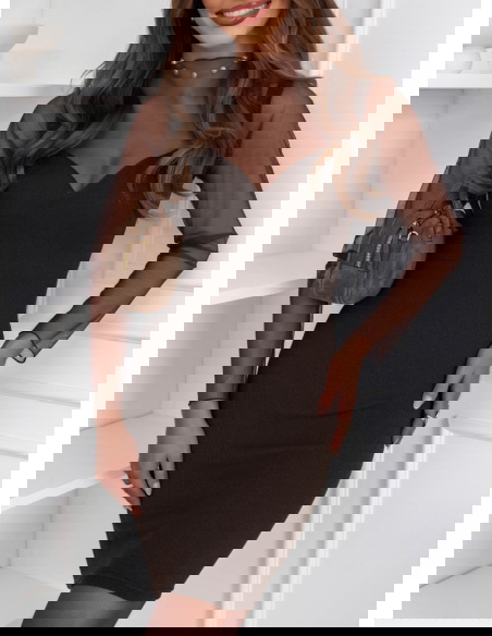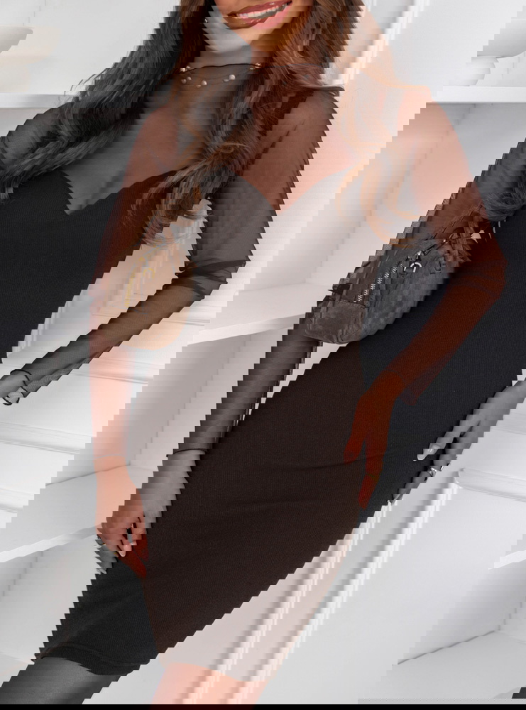 Czekoladowa prążkowana sukienka z tiulowymi rękawami Laverle to idealne połączenie klasy, elegancji i subtelnego uroku. Jej głęboki odcień brązu pięknie podkreśla urodę, a dopasowany fason zmysłowo akcentuje sylwetkę. Delikatny tiul na rękawach i dekolcie nadaje całości lekkości, tworząc harmonijne zestawienie z prążkowaną strukturą materiału. To sukienka, która zachwyca prostotą, ale i niezwykłą finezją – idealna dla kobiet, które lubią czuć się wyjątkowo w każdej sytuacji. Wyróżnia się nowoczesnym, eleganckim designem, który sprawia, że trudno oderwać od niej wzrok. Czekoladowy kolor dodaje jej ciepła i ponadczasowego wdzięku, idealnie wpisując się w jesienno-zimowy klimat. Sukienka łączy kobiecość z wygodą, tworząc stylizację pełną klasy i pewności siebie. Każdy detal – od delikatnych tiulowych rękawów po subtelny półgolf – podkreśla wyjątkowy charakter tego modelu.