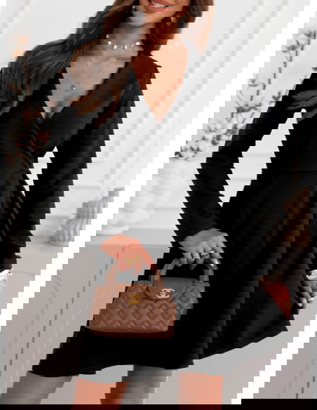 Czarna sukienka z przekładanym dekoltem Kerrington
