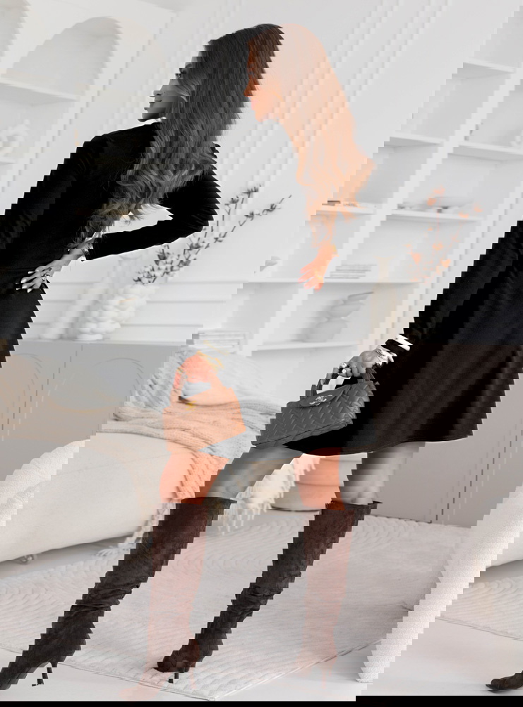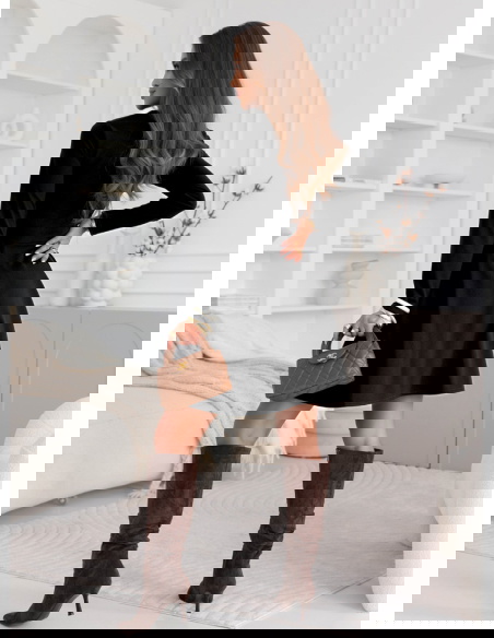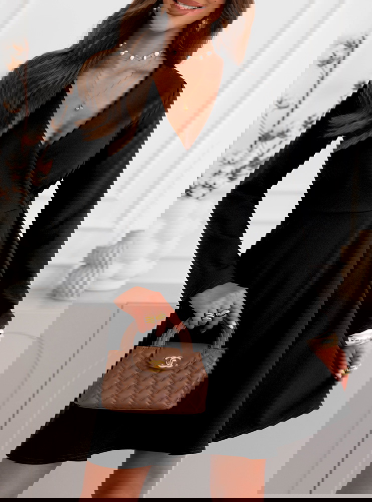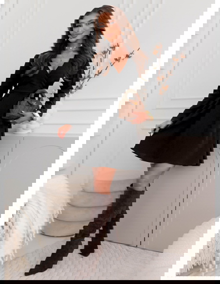 Czarna sukienka z przekładanym dekoltem Kerrington to klasyka, która nigdy nie wychodzi z mody. To model, który zachwyca swoją prostotą, a jednocześnie elegancją i kobiecym charakterem. Głęboka czerń nadaje całości wyrafinowanego wyglądu, a przekładany dekolt subtelnie podkreśla szyję i dekolt. Sukienka ma krój, który pięknie układa się na sylwetce, optycznie wysmuklając talię i nadając figurze idealnych proporcji. Długie rękawy wprowadzają elegancję i sprawiają, że model doskonale sprawdza się w jesiennym sezonie. Rozkloszowany dół dodaje lekkości i dziewczęcego wdzięku. To sukienka, która łączy ponadczasowy szyk z uniwersalnym stylem, idealnym na różne okazje. Wystarczy dobrać odpowiednie dodatki, by stworzyć stylizację zarówno na co dzień, jak i na wyjątkowy wieczór. Czarna sukienka z przekładanym dekoltem to wybór, który podkreśla kobiecość w najpiękniejszym wydaniu.