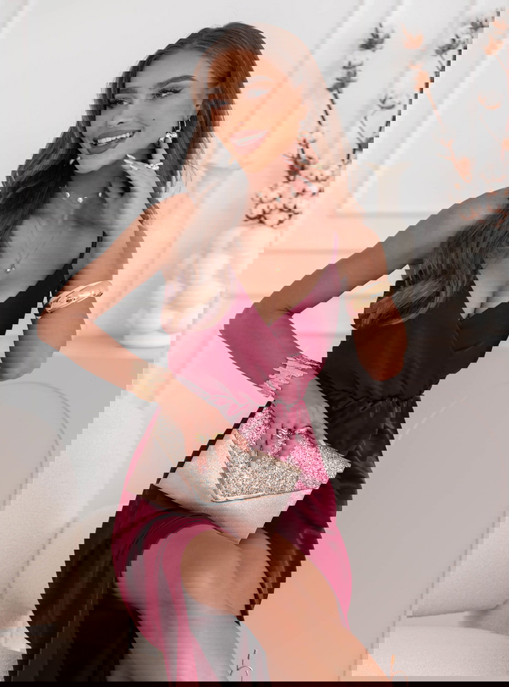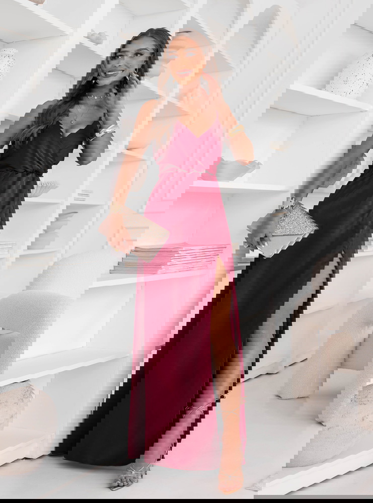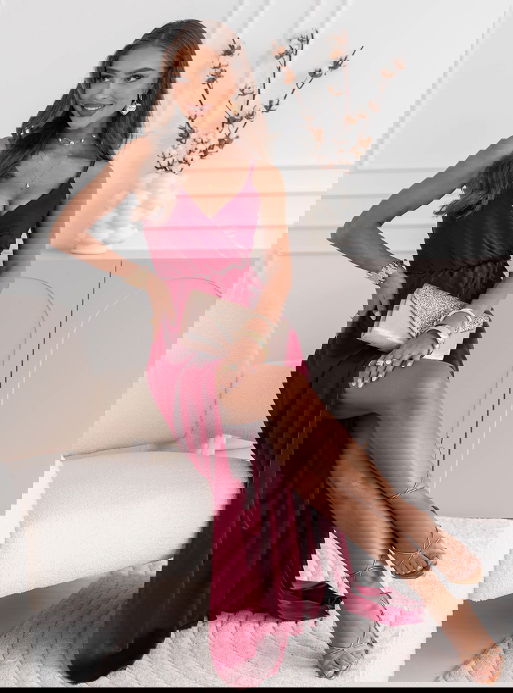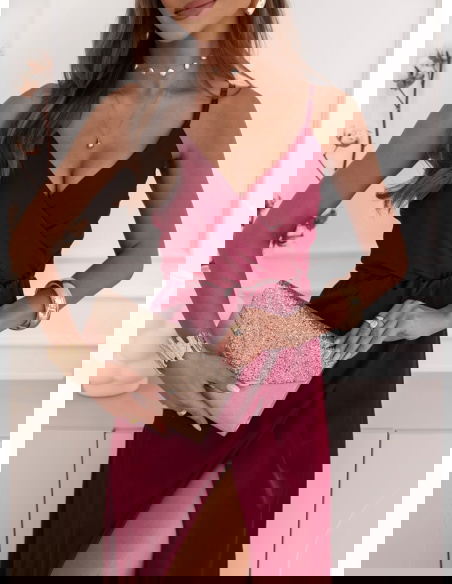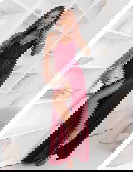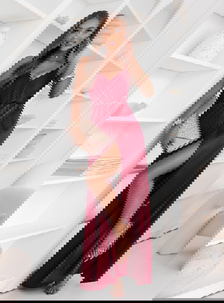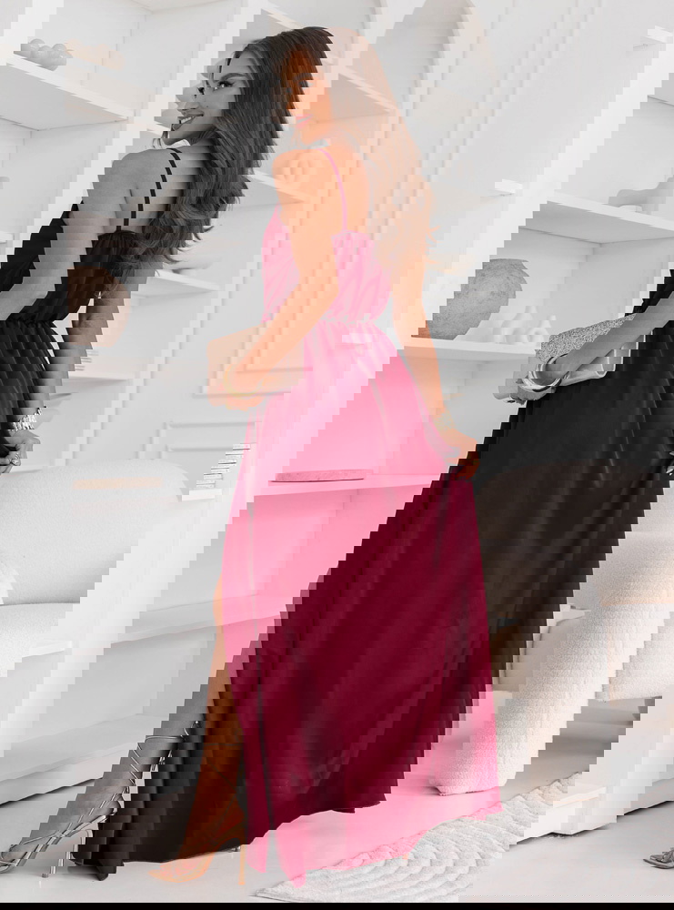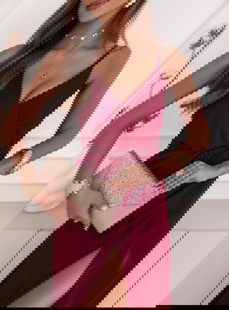 Bordowa sukienka satynowa maxi na ramiączkach Ayalisse to kwintesencja elegancji, zmysłowości i kobiecego wdzięku. Jej głęboki kolor przyciąga spojrzenia, a satynowe wykończenie nadaje całości luksusowego charakteru. To model, który łączy lekkość z wyrafinowanym stylem, sprawiając, że każda kobieta wygląda w nim wyjątkowo. Delikatne ramiączka subtelnie eksponują ramiona i szyję, a kopertowy dekolt dodaje sukience romantycznego uroku. Rozcięcie na nodze wprowadza nutę zmysłowości, zachowując przy tym klasę i elegancję. Sukienka pięknie układa się w ruchu, podkreślając sylwetkę w najbardziej kobiecy sposób. To kreacja stworzona z myślą o wyjątkowych chwilach, które wymagają równie wyjątkowego stroju. Bordowy odcień doskonale wpisuje się w wieczorowy klimat i dodaje pewności siebie. To sukienka, która zachwyca swoim blaskiem i ponadczasowym wdziękiem.