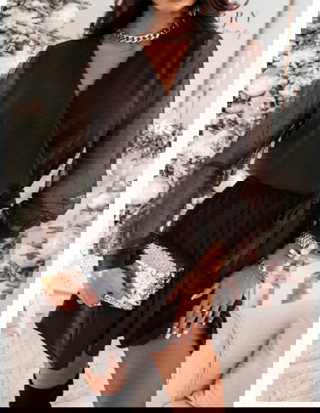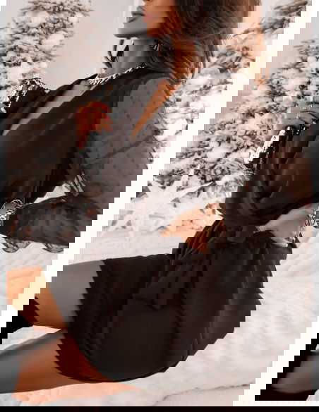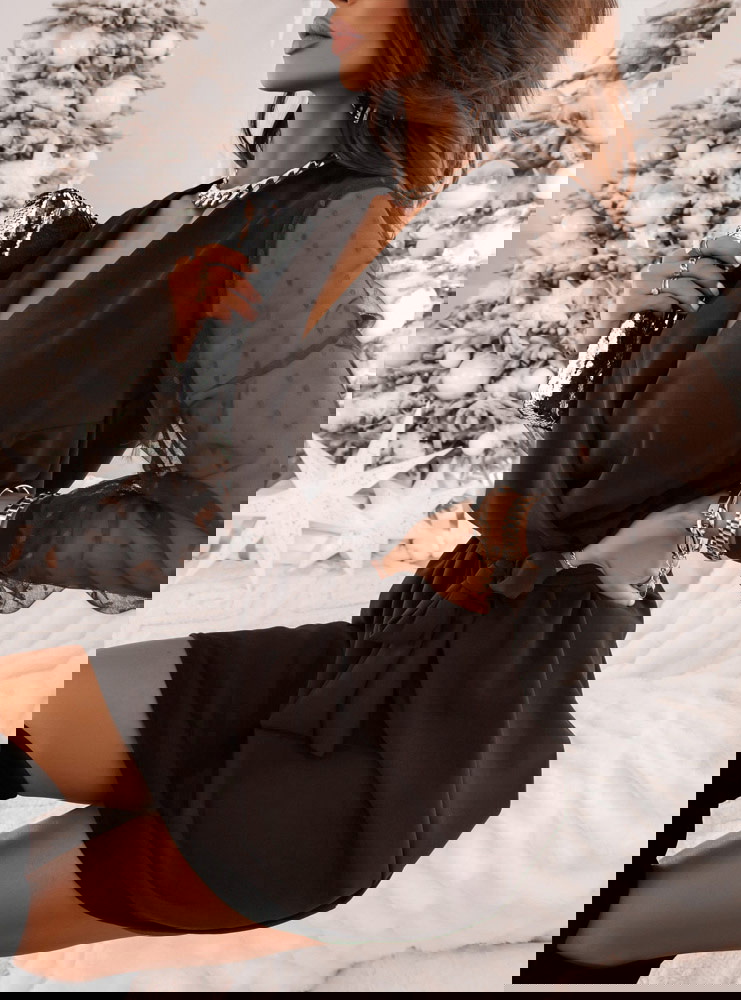 Czekoladowa sukienka z przekładanym dekoltem i tiulowymi rękawami Shandiina to połączenie elegancji, kobiecości i wyjątkowego wdzięku. Jej głęboki, ciepły odcień czekolady pięknie podkreśla urodę i idealnie wpisuje się w jesienno-zimowy klimat. To model, który zachwyca subtelnymi detalami – od zmysłowego dekoltu po delikatne, transparentne rękawy ozdobione drobnymi kropeczkami. Przekładany krój nadaje sylwetce lekkości, a wiązanie w talii podkreśla kobiece kształty w niezwykle naturalny sposób. To sukienka, która łączy klasyczną elegancję z nutą nowoczesności, dzięki czemu sprawdzi się zarówno na co dzień, jak i podczas wyjątkowych okazji. Jej zwiewny dół pięknie układa się w ruchu, nadając całej stylizacji lekkości. To model stworzony dla kobiet, które cenią subtelne, ale efektowne rozwiązania. Z nią poczujesz się pewnie, stylowo i wyjątkowo – niezależnie od okazji.