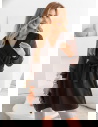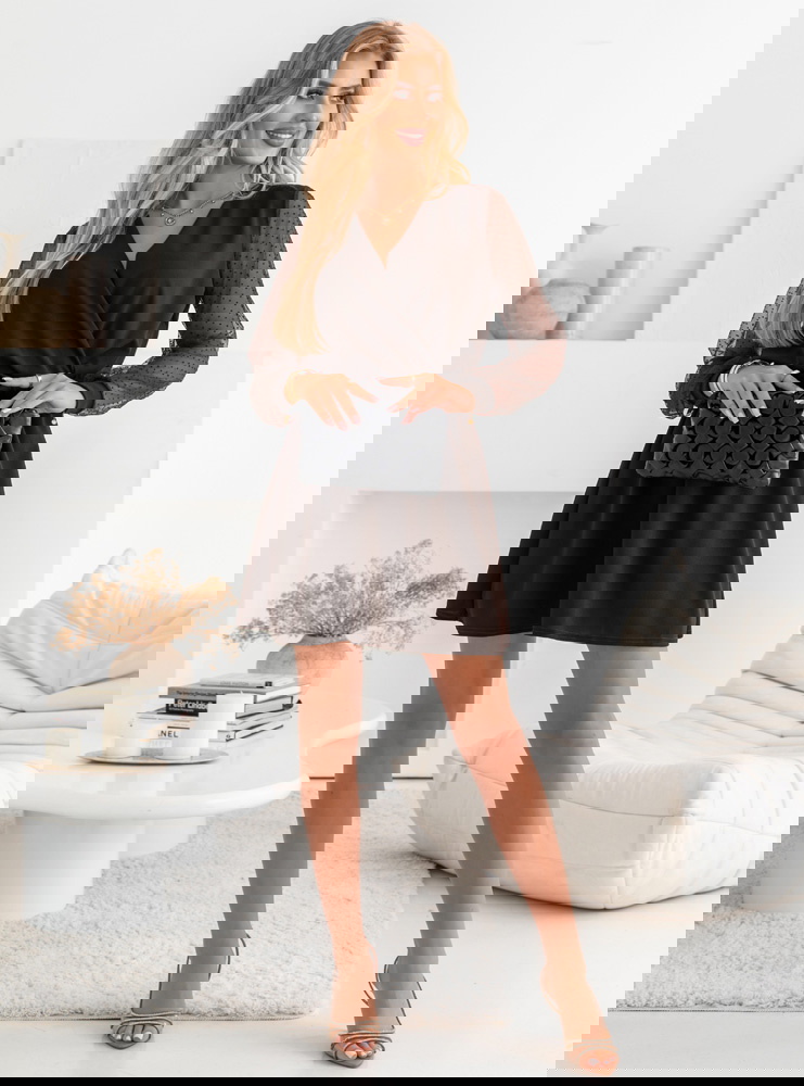 Czekoladowa sukienka z przekładanym dekoltem i tiulowymi rękawami Mertysa to elegancka propozycja, która łączy w sobie kobiecy wdzięk i jesienny urok. Jej głęboki odcień brązu wprowadza ciepło i klasę, idealnie wpisując się w modowy klimat tej pory roku. To sukienka, która zachwyca subtelnymi detalami, jednocześnie pozostając niezwykle stylowa. Przekładany dekolt pięknie eksponuje szyję i obojczyki, dodając całości lekkości i elegancji. Przezroczyste rękawy z delikatnymi kropeczkami to romantyczny akcent, który przyciąga uwagę i dodaje charakteru. Wiązanie w talii podkreśla kobiecą sylwetkę, nadając sukience harmonijny, zmysłowy kształt. Rozkloszowany dół sprawia, że całość prezentuje się lekko i subtelnie. To model, który świetnie sprawdzi się zarówno na co dzień, jak i podczas wyjątkowych okazji. Czekoladowy kolor dodaje głębi i elegancji, a przy tym jest uniwersalny i ponadczasowy. To propozycja dla kobiet, które lubią wyglądać z klasą, ale czuć się swobodnie.