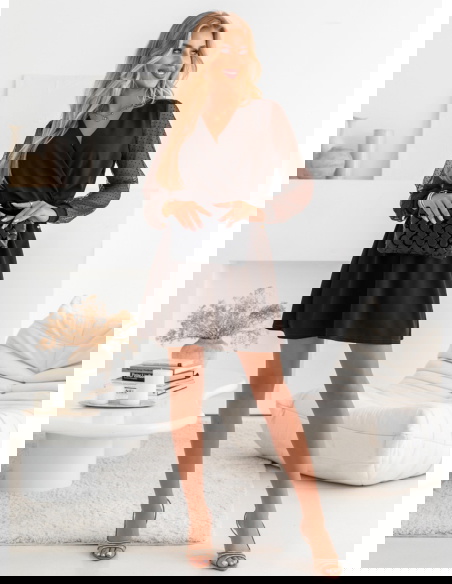 Czekoladowa sukienka z przekładanym dekoltem i tiulowymi rękawami Mertysa to połączenie elegancji, romantyzmu i kobiecego wdzięku. Jej subtelne tiulowe rękawy i przekładany dekolt tworzą harmonijną całość, która zachwyca prostotą i klasą.