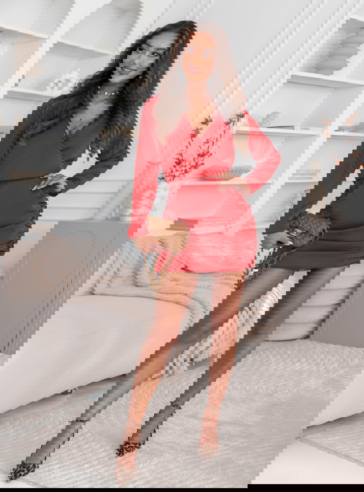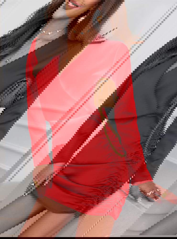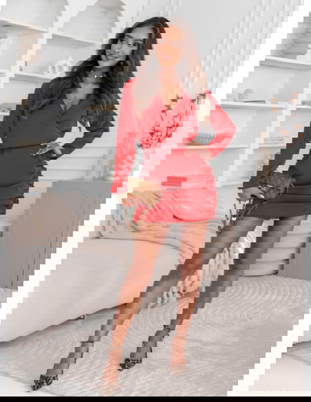 Malinowa satynowa sukienka ze ściągaczami po bokach Natawni to kwintesencja elegancji połączonej z nowoczesnym, kobiecym wdziękiem. Jej intensywny kolor przyciąga spojrzenia, dodając pewności siebie i energii każdej stylizacji. Satynowe wykończenie delikatnie połyskuje, tworząc efekt luksusu i subtelnego blasku. Przekładany dekolt pięknie podkreśla biust i szyję, a dopasowany krój doskonale modeluje sylwetkę. Marszczenia po bokach nadają całości lekkości i sprawiają, że sukienka prezentuje się niezwykle kobieco. To model, który idealnie łączy klasykę z nutą zmysłowości — elegancki, ale pełen świeżości i charakteru. Doskonale sprawdzi się zarówno w wieczorowym wydaniu, jak i na specjalne okazje, gdy chcesz wyglądać wyjątkowo. Sukienka pięknie podkreśla sylwetkę, zapewniając przy tym pełen komfort noszenia. To model, który zachwyca prostotą i kobiecym wdziękiem — idealny na każdą okazję, gdy chcesz błyszczeć z klasą.