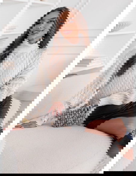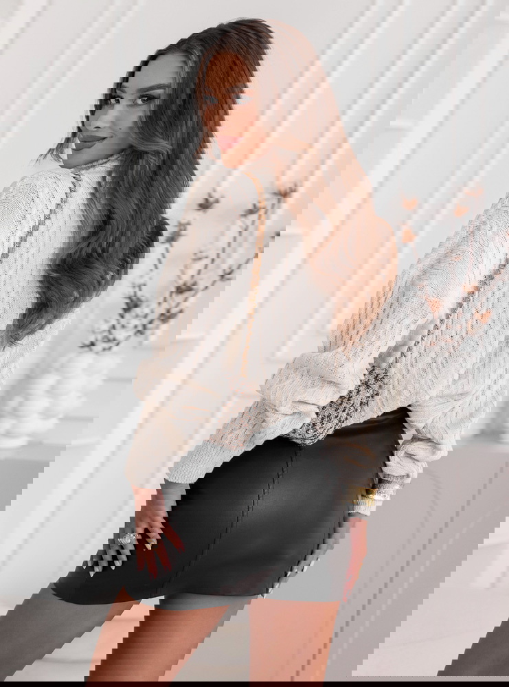 Beżowy sweter oversize z golfem Marjolein to idealny wybór na chłodniejsze dni – ciepły, przytulny i niezwykle stylowy. Jego klasyczny, jasny odcień beżu pięknie komponuje się z jesienno-zimową paletą barw, dodając każdej stylizacji elegancji i lekkości. Luźny fason w stylu oversize gwarantuje komfort i swobodę ruchów, jednocześnie podkreślając modny, nonszalancki charakter. Golf otula szyję, nadając całości przyjemnego, ciepłego wyglądu. Warkoczowy splot dodaje mu tekstury i sprawia, że prezentuje się wyjątkowo efektownie. To model, który doskonale łączy casualowy styl z nutą elegancji. Możesz go nosić zarówno do spódnicy, jak i do ulubionych spodni – zawsze wygląda świetnie. Beżowy sweter oversize z golfem to prawdziwy must-have sezonu, który łączy w sobie wygodę i ponadczasowy styl.