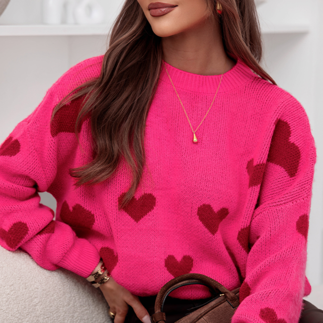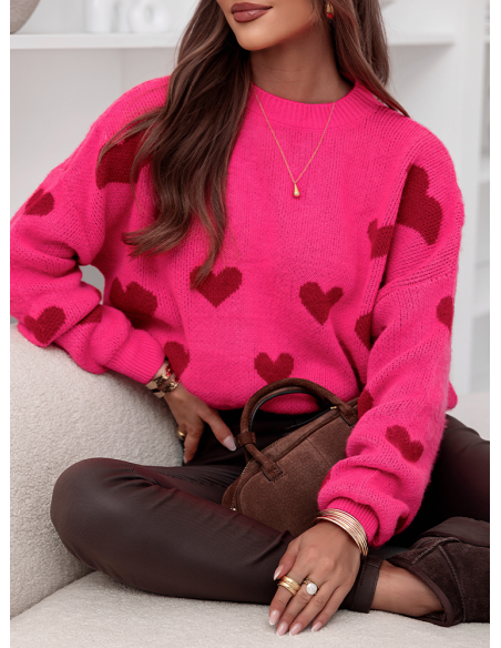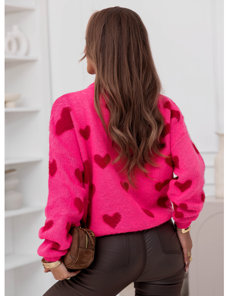 Sweter w serduszka Neffe - neonowy róż to esencja kobiecego uroku i pozytywnej energii. Jego żywy kolor ożywi każdą stylizację, a uroczy wzór serduszek doda jej lekkości.