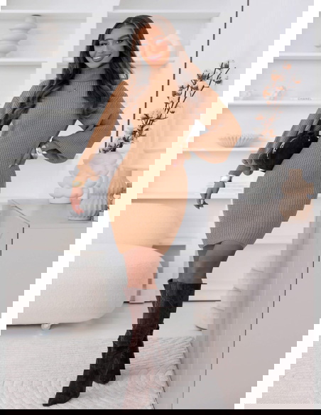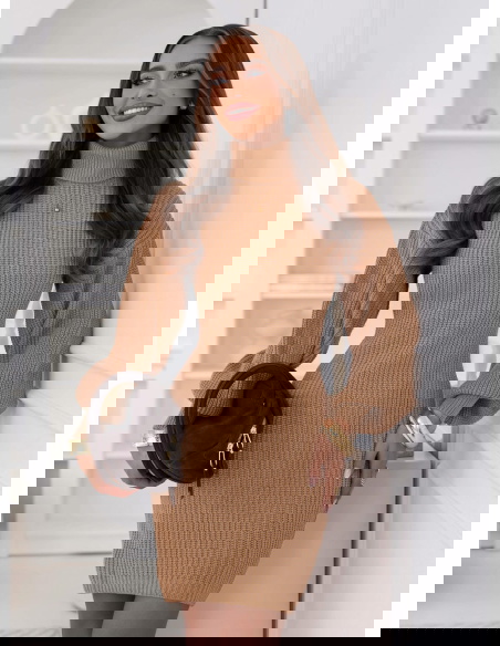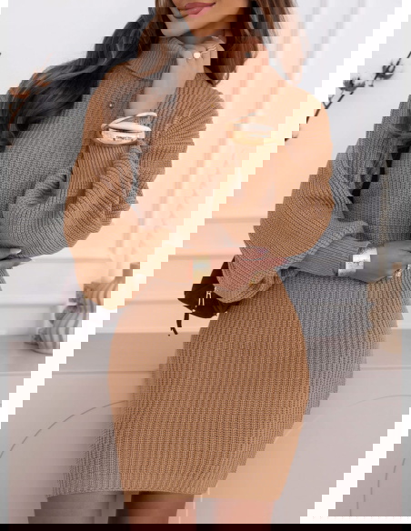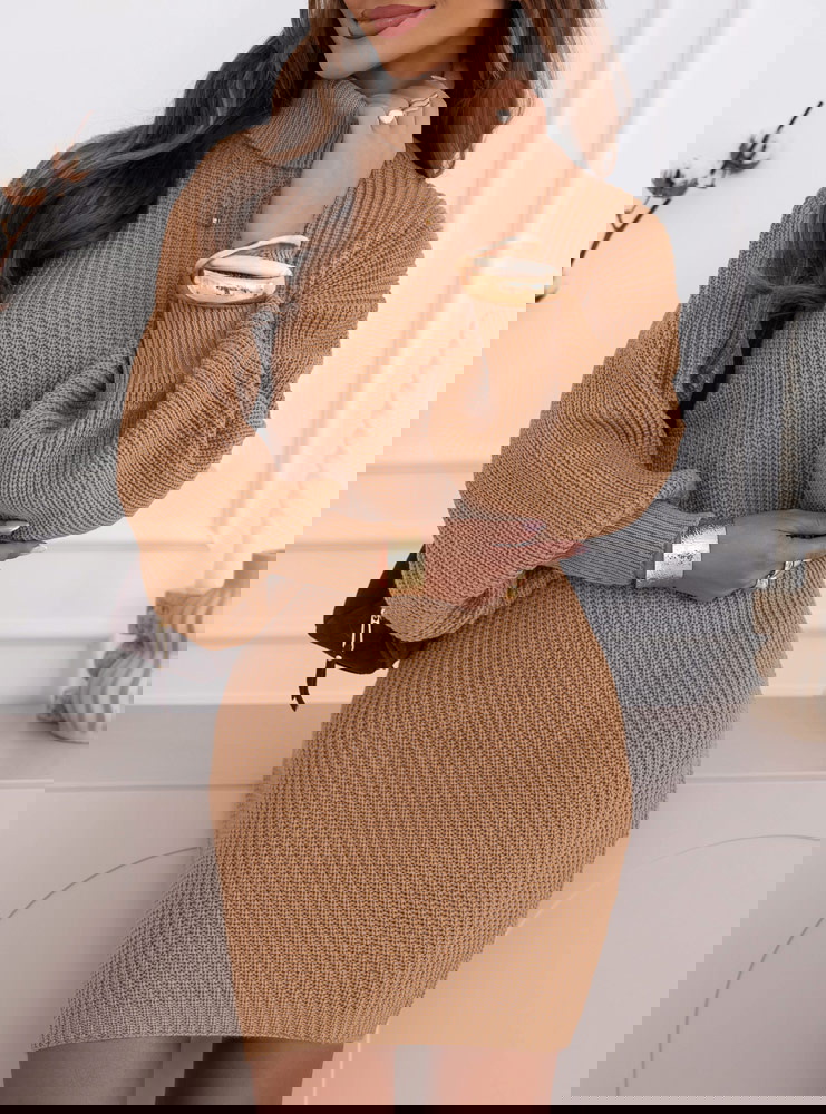 Swetrowa sukienka z golfem Evilia - mocha mousse