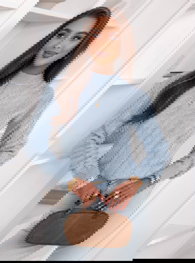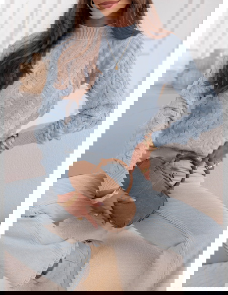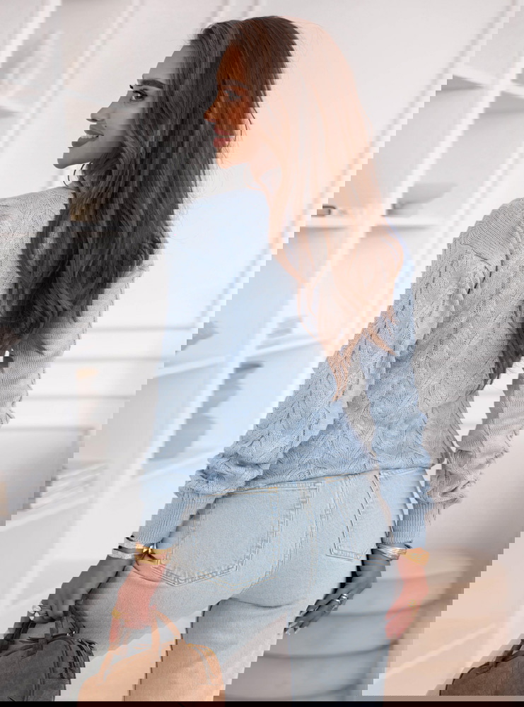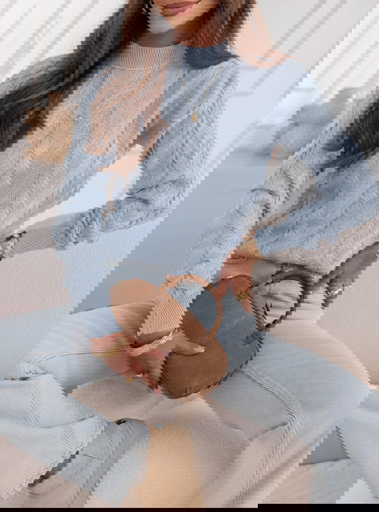 Błękitny sweter z półgolfem Ruthanne to kwintesencja świeżości i delikatnej elegancji w jesiennym wydaniu. Jego pastelowy kolor wprowadza do stylizacji lekkość, jednocześnie podkreślając subtelny, kobiecy charakter. To model, który zachwyca prostotą, a zarazem przyciąga uwagę dzięki klasycznemu splotowi. Świetnie sprawdzi się w chłodniejsze dni, kiedy chcesz czuć się komfortowo, ale nadal wyglądać stylowo. Jasny odcień błękitu doskonale rozświetla cerę i pasuje zarówno do jasnych, jak i ciemniejszych dodatków. Sweter prezentuje się niezwykle harmonijnie – to połączenie minimalizmu i ponadczasowego uroku. Jego półgolf dodaje całości elegancji i stanowi idealny balans między casualem a klasyką. To model, który możesz nosić na wiele sposobów – do jeansów, spódnicy czy eleganckich spodni. Z łatwością wpisuje się w klimat jesiennych dni pełnych ciepła i spokoju. Błękitny sweter z półgolfem to wybór dla kobiet, które cenią sobie styl w naturalnej, niewymuszonej formie.