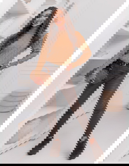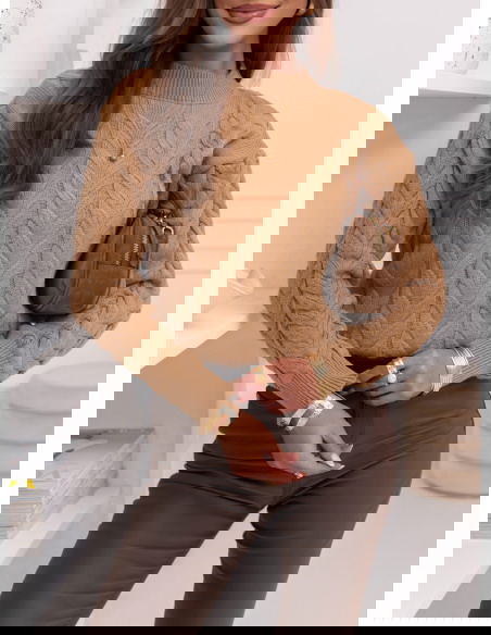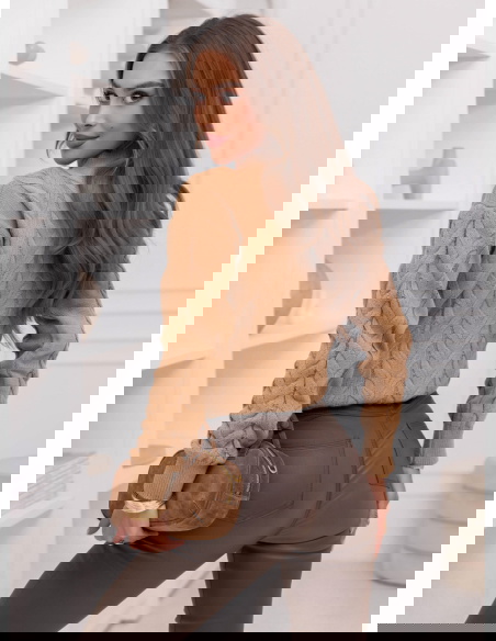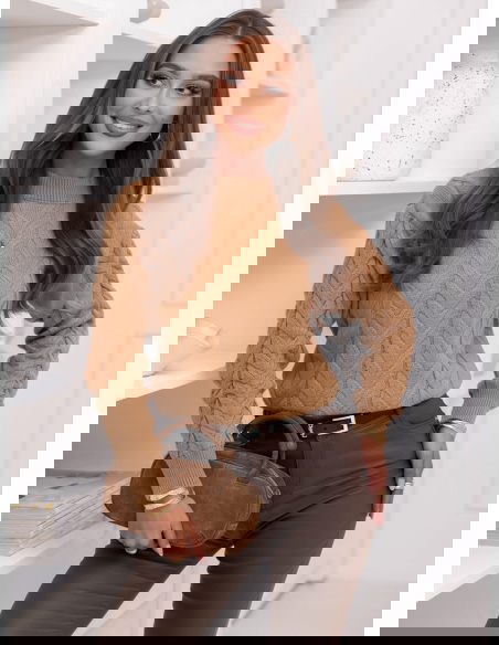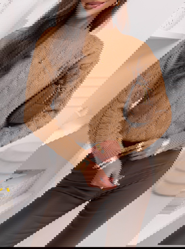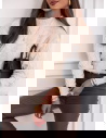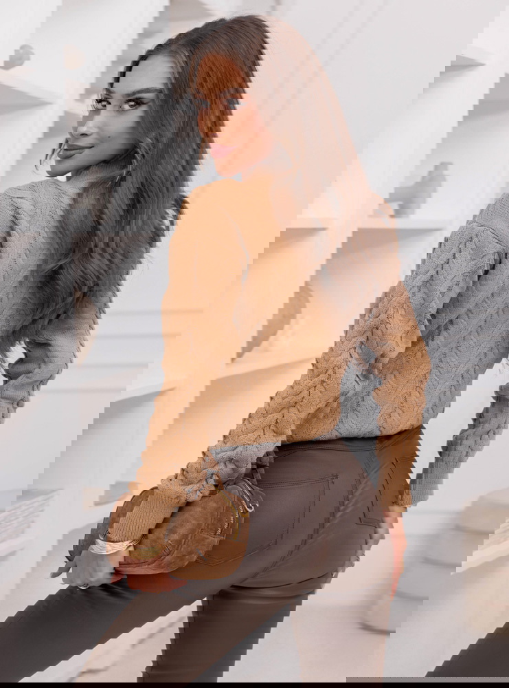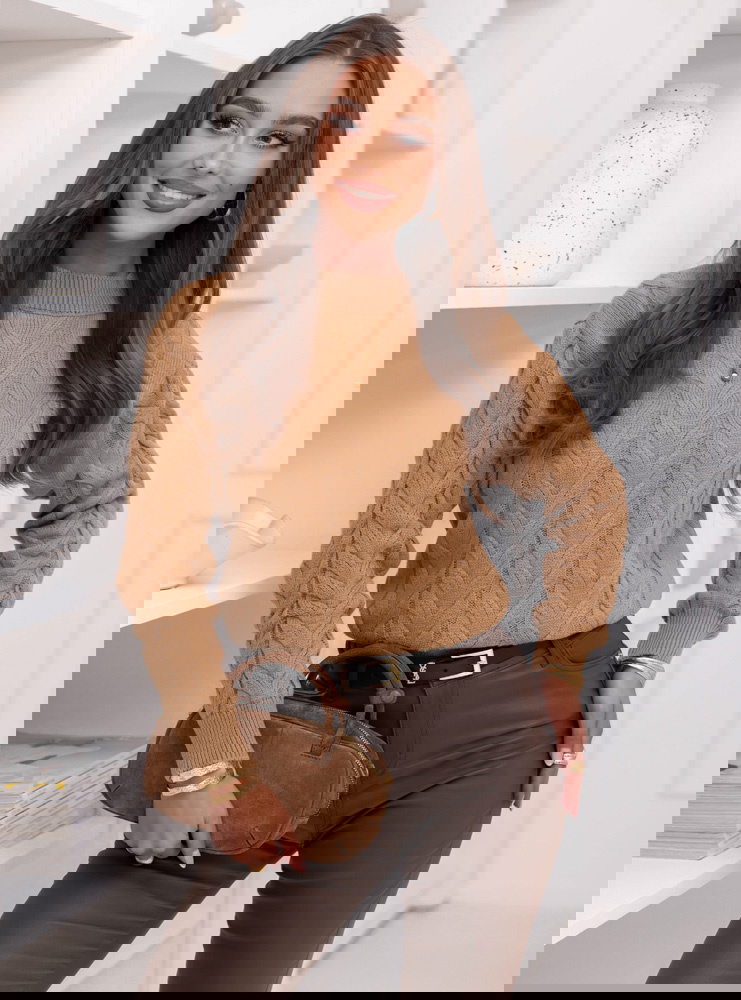 Sweter z półgolfem Ruthanne - mocha mousse to esencja jesiennego szyku w subtelnej, ciepłej tonacji. Idealnie wpisuje się w klimat chłodniejszych dni, łącząc elegancję z codzienną wygodą. Jego delikatny odcień mocha to kolor, który dodaje stylizacji klasy i przytulności. To model, który sprawi, że nawet prosta stylizacja nabierze wyjątkowego charakteru. Subtelny półgolf pięknie podkreśla szyję, dodając całości szlachetnego wyglądu. Rękawy z ozdobnym splotem nadają mu oryginalności i sprawiają, że prezentuje się niezwykle kobieco. To sweter, który przyciąga spojrzenia swoją prostotą i elegancją. Możesz nosić go zarówno w wersji casualowej, jak i bardziej wyjściowej. Dzięki klasycznemu krojowi i ponadczasowemu kolorowi dopasuje się do wielu stylów. To propozycja, która z łatwością stanie się ulubionym elementem jesiennej garderoby.