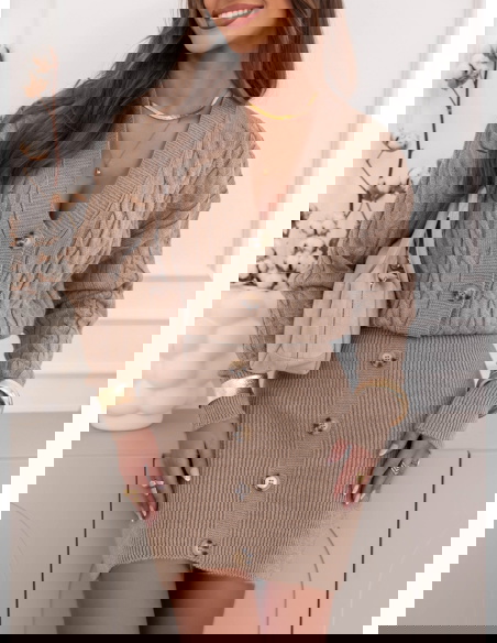 Swetrowa sukienka z guzikami Fenneke - mocha mousse