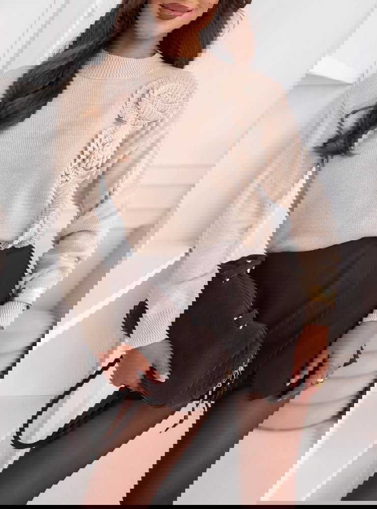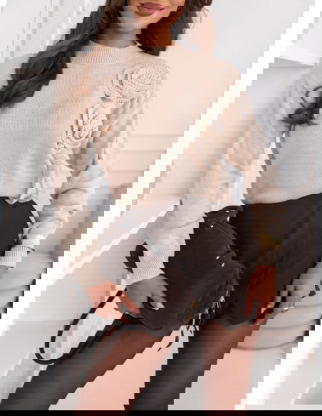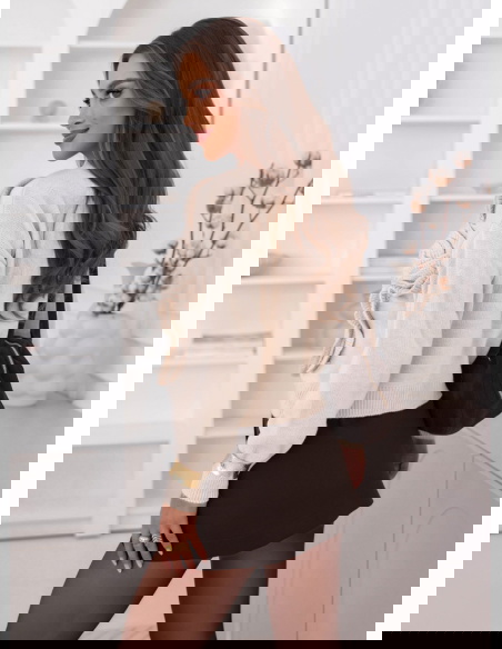 Beżowy sweter z ozdobnymi kwiatami Leahcim