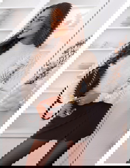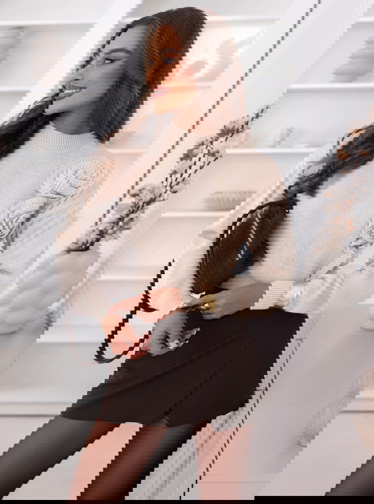 Beżowy sweter z ozdobnymi kwiatami Leahcim to wyjątkowa propozycja, która łączy subtelność z wyrafinowanym stylem. To model, który przyciąga uwagę detalem – trójwymiarowe, dzianinowe kwiaty nadają mu niezwykle kobiecego charakteru. Jego elegancki, a zarazem delikatny wygląd sprawia, że doskonale wpisuje się w jesienne trendy. Beżowy odcień nadaje całości klasy i harmonii, tworząc idealną bazę do różnorodnych stylizacji. Sweter ma prosty fason, dzięki czemu ozdobne elementy stają się głównym akcentem całej stylizacji. Subtelny półgolf pięknie podkreśla szyję, a miękkie wykończenie zapewnia przyjemność noszenia przez cały dzień. To model, który łączy elegancję z nowoczesnym wdziękiem – doskonały zarówno na co dzień, jak i na bardziej wyjątkowe okazje. Zestawiony z prostą spódnicą czy eleganckimi spodniami, wygląda niezwykle stylowo i kobieco. W tym swetrze każda kobieta poczuje się wyjątkowo – z klasą, lekko i z nutą romantyzmu.