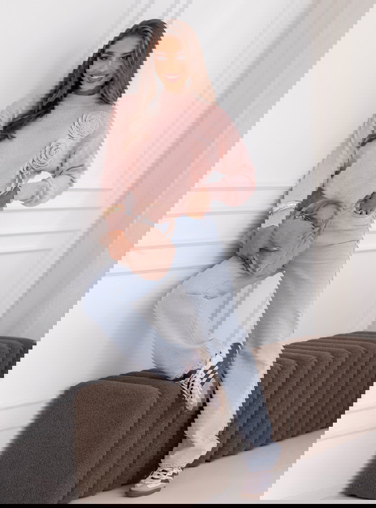 Pudrowy sweter z ozdobnymi kwiatami Leahcim to kwintesencja delikatności i kobiecego wdzięku. Jego subtelny, różany odcień wprowadza do stylizacji nutę świeżości i romantycznego ciepła. To model, który od razu przyciąga uwagę detalem – efektownymi, trójwymiarowymi kwiatami, które dodają całości wyjątkowego uroku. Idealnie wpisuje się w jesienny klimat, kiedy szukamy połączenia komfortu i stylu. Pudrowy kolor pięknie podkreśla kobiecą urodę, dodając twarzy blasku i miękkości. Sweter jest elegancki, a zarazem codzienny – świetnie sprawdzi się w różnych sytuacjach. To propozycja dla kobiet, które lubią wyróżniać się subtelnie, bez przesady. Każdy detal został przemyślany tak, by tworzyć harmonijną całość. Idealny do stylizacji z jasnymi spodniami, spódnicą lub eleganckimi dodatkami. To sweter, który łączy w sobie lekkość, przytulność i modny akcent w postaci kwiatowych zdobień.