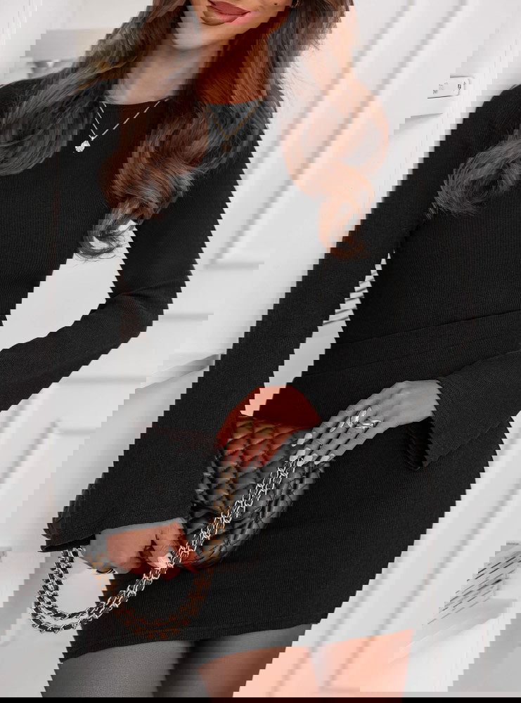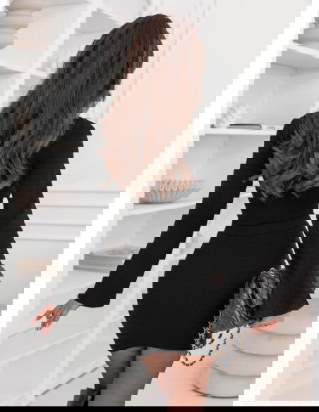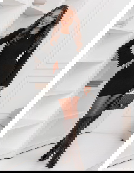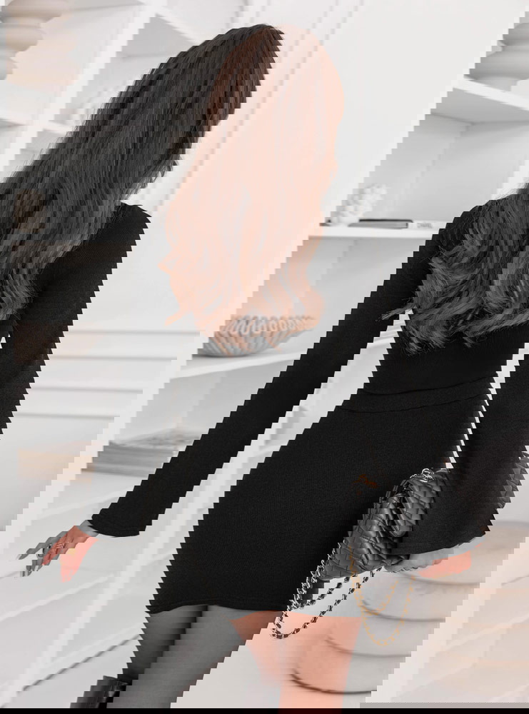 Czarny prążkowany komplet bluzka i spódniczka Jennyver to kwintesencja elegancji w nowoczesnym, kobiecym wydaniu. Minimalistyczny, a jednocześnie niezwykle efektowny – idealny dla kobiet, które cenią ponadczasowy styl. Głęboka czerń dodaje całości klasy i sprawia, że komplet prezentuje się wyjątkowo szykownie. Dopasowany krój pięknie podkreśla sylwetkę, eksponując kobiece kształty z wyczuciem i subtelnością. Prążkowana struktura nadaje całości lekkości i modowego charakteru. Długie rękawy oraz dopasowana spódniczka tworzą harmonijną, spójną całość, idealną na chłodniejsze dni. To komplet, który sprawdzi się zawsze – niezależnie od okazji. Możesz nosić go razem lub osobno, tworząc wiele stylizacji w jednym. To wybór, który łączy elegancję, wygodę i nowoczesny szyk w jednym wyjątkowym zestawie. W nim każda kobieta poczuje się pewnie i stylowo, niezależnie od miejsca i chwili.
