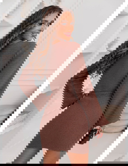 Prążkowany komplet bluzka i spódniczka Jennyver - mocha mousse to esencja kobiecego minimalizmu w modnym, jesiennym wydaniu. Jego ciepły kolor mocha mousse dodaje stylizacjom przytulności i elegancji.