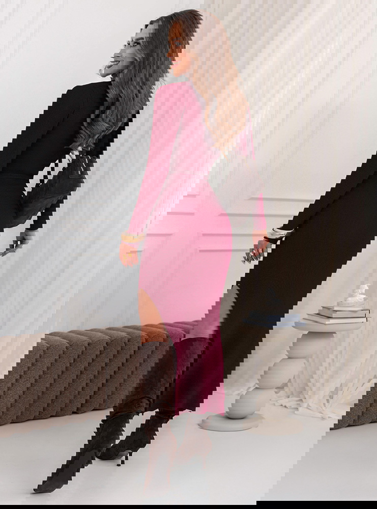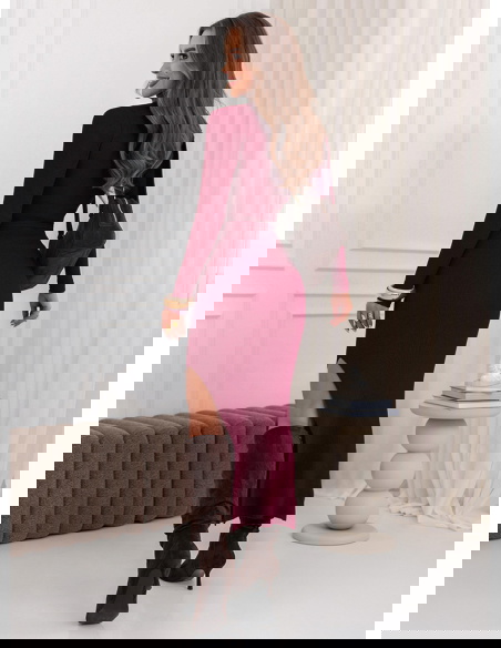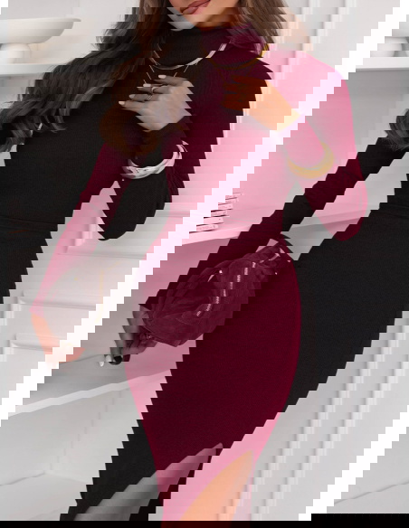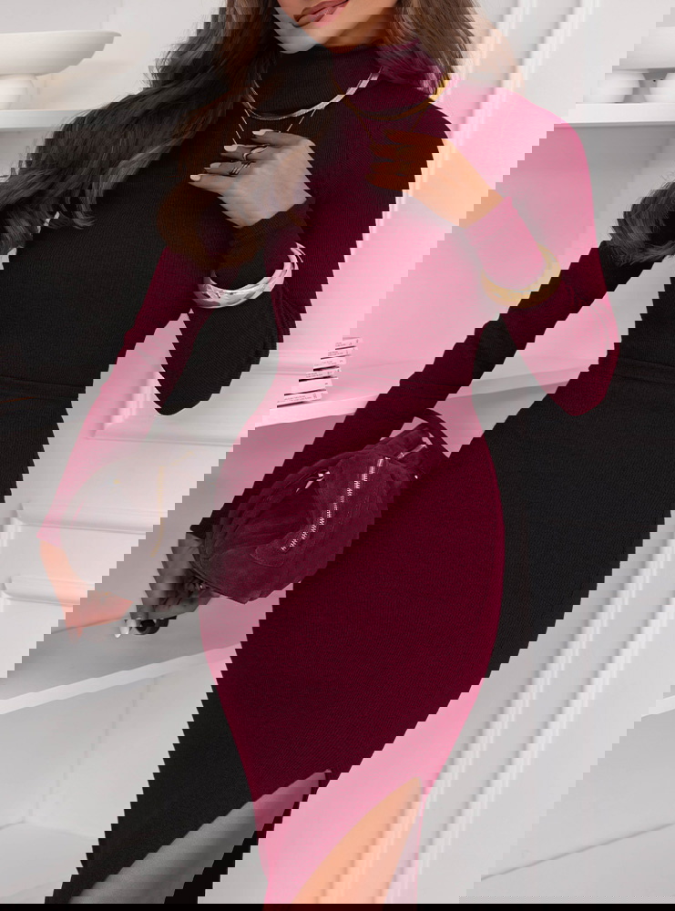 Bordowy prążkowany komplet bluzka i spódnica z rozcięciem Monagenee to elegancka, a zarazem niezwykle kobieca propozycja, która doskonale podkreśla sylwetkę. Głęboki odcień bordo dodaje stylizacji klasy i szyku, a dopasowany fason subtelnie akcentuje kobiece kształty. Komplet łączy w sobie nowoczesność i ponadczasową elegancję – to idealny wybór dla kobiet, które cenią styl w każdej sytuacji. Długa spódnica o długości midi z rozcięciem z boku wprowadza nutę zmysłowości, jednocześnie zachowując klasę i wyważenie. Bluzka z długim rękawem i delikatnym golfem doskonale komponuje się z dopasowanym dołem, tworząc spójną, harmonijną całość. Całość prezentuje się niezwykle stylowo – to połączenie prostoty, elegancji i odrobiny romantyzmu. Ten komplet to idealna propozycja na chłodniejsze dni, kiedy chcesz wyglądać modnie, ale czuć się wygodnie i pewnie. W nim każda kobieta poczuje się wyjątkowo – zmysłowo, elegancko i z klasą.