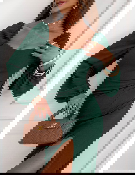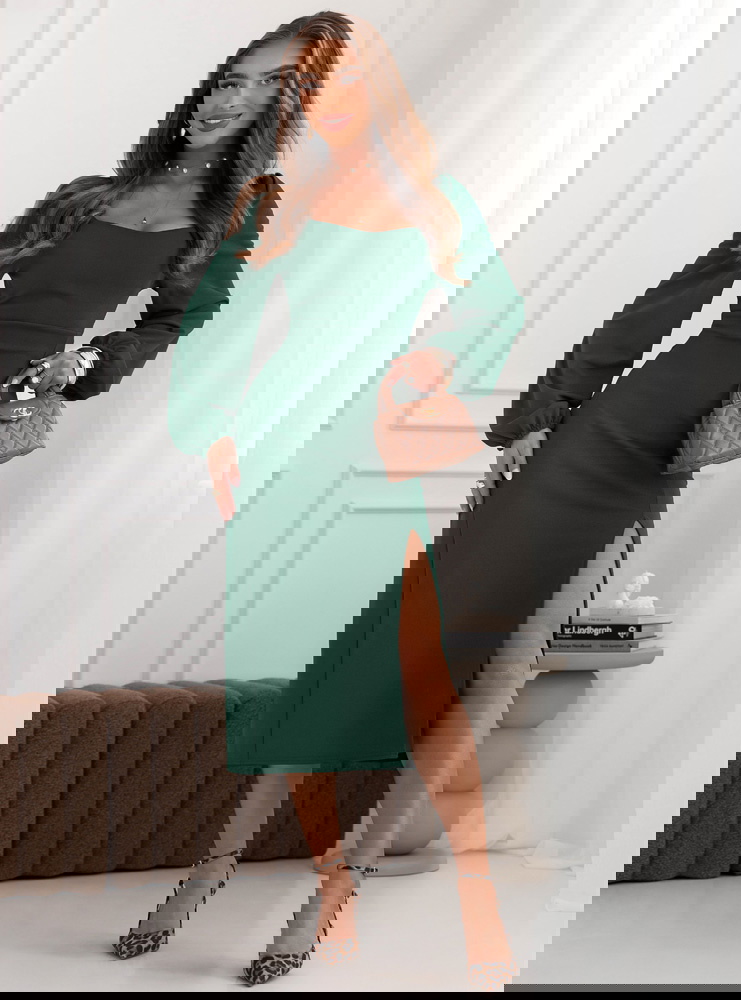 Sukienka z rozcięciem Cathey - butelkowa zieleń to propozycja, która łączy elegancję z ponadczasowym szykiem. Jej dopasowany fason podkreśla sylwetkę, eksponując kobiece kształty w subtelny, zmysłowy sposób. Głęboki odcień zieleni zachwyca swoją szlachetnością i idealnie wpisuje się w jesienno-zimowe trendy. Długie, lekko bufiaste rękawy nadają całości delikatności i romantycznego uroku. Rozcięcie z boku dodaje lekkości oraz zmysłowego charakteru, dzięki czemu sukienka prezentuje się wyjątkowo przy każdym kroku. To model, który sprawia, że każda kobieta wygląda elegancko i z klasą, niezależnie od okazji. Prostota kroju połączona z dopracowanymi detalami tworzy efekt, który zachwyca subtelnym luksusem. W tej sukience poczujesz się pewnie i wyjątkowo – idealnie sprawdzi się wtedy, gdy chcesz zrobić wrażenie. Butelkowa zieleń dodaje całości głębi, podkreślając urodę i elegancję noszącej ją kobiety.