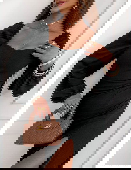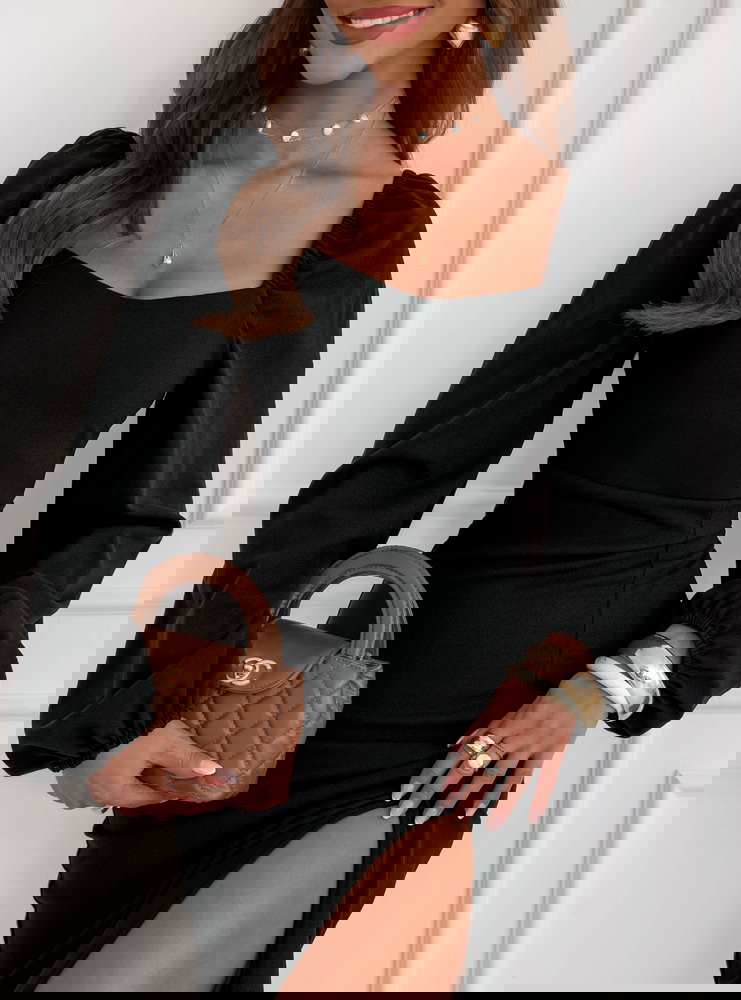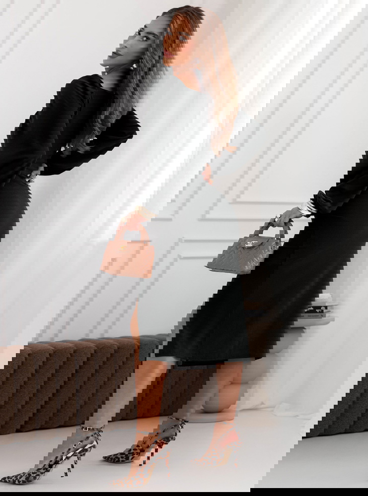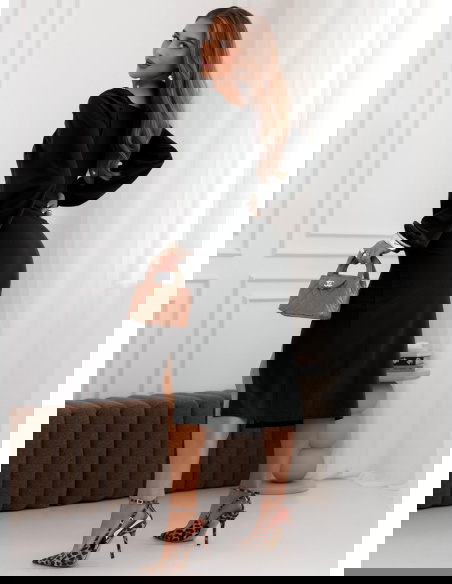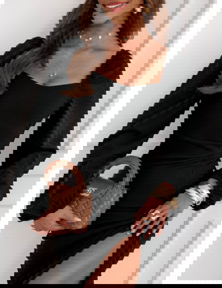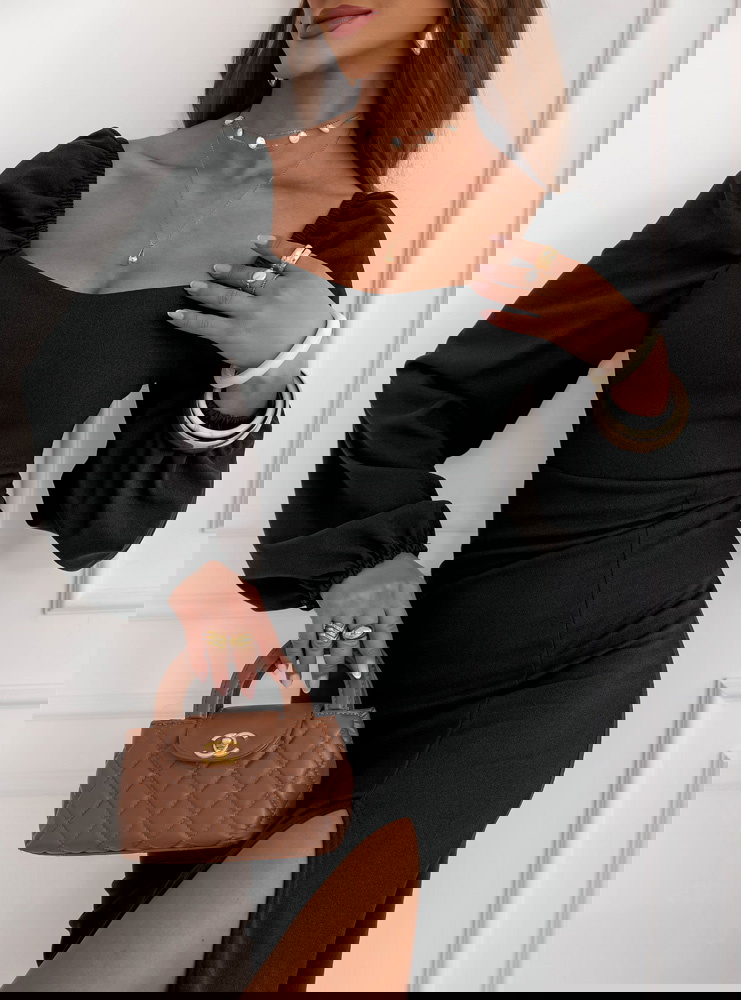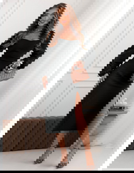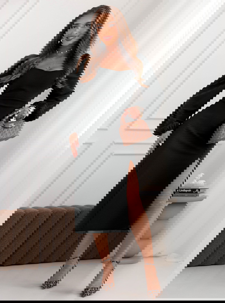 Czarna sukienka z rozcięciem Cathey to kwintesencja kobiecej elegancji i ponadczasowego szyku. Jej klasyczny krój w połączeniu z subtelnym akcentem w postaci rozcięcia tworzy wyjątkowo zmysłową, ale wciąż niezwykle elegancką całość. To model, który doskonale łączy minimalizm z nutą nowoczesności. Długość midi nadaje jej szlachetności, a dopasowany krój pięknie podkreśla figurę. Długie, lekko bufiaste rękawy dodają stylizacji lekkości i romantycznego uroku. To sukienka, która doskonale sprawdzi się o każdej porze roku – zarówno podczas eleganckich spotkań, jak i wyjątkowych wieczorów. Czerń zawsze pozostaje symbolem klasy i pewności siebie, dlatego ta kreacja to prawdziwa inwestycja w uniwersalny styl. Każdy jej detal został dopracowany tak, by tworzyć harmonijną i kobiecą całość. W niej poczujesz się wyjątkowo – niezależnie od okazji.