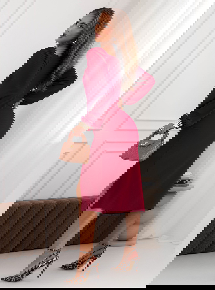 Bordowa sukienka z rozcięciem Cathey to elegancka i kobieca propozycja, która zachwyca swoją prostotą oraz szykiem. Jej głęboki, nasycony kolor przyciąga spojrzenia, emanując klasą i pewnością siebie. To model, który łączy klasykę z nowoczesnym wykończeniem, tworząc idealną harmonię pomiędzy subtelnością a zmysłowością. Dopasowany krój pięknie podkreśla sylwetkę, a długość midi nadaje całości wyrafinowanego charakteru. Rozcięcie z boku dodaje odrobiny odwagi, zachowując przy tym elegancki ton. Długie, bufiaste rękawy nadają jej lekkości i delikatnego romantyzmu, idealnie równoważąc dopasowany dół. To sukienka, w której można poczuć się wyjątkowo – stylowo, kobieco i pewnie siebie. Świetnie sprawdzi się w jesiennych stylizacjach, kiedy dominują ciepłe barwy i eleganckie formy. Bordowy kolor to klasyka w najlepszym wydaniu – zawsze modny i zawsze efektowny.