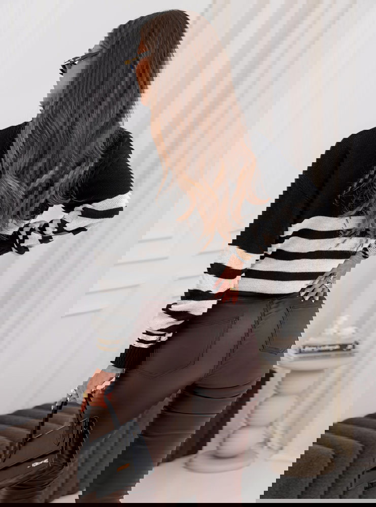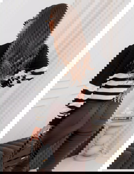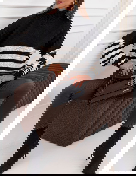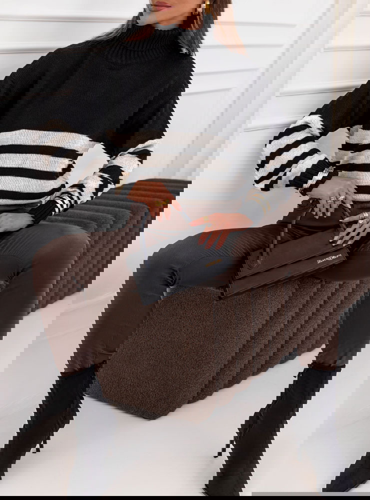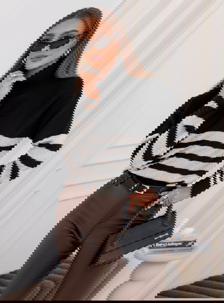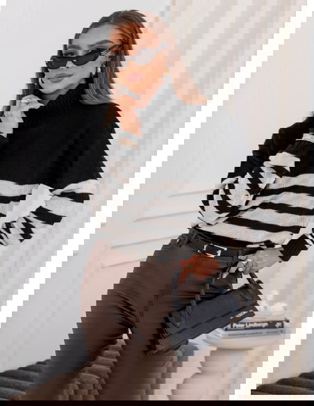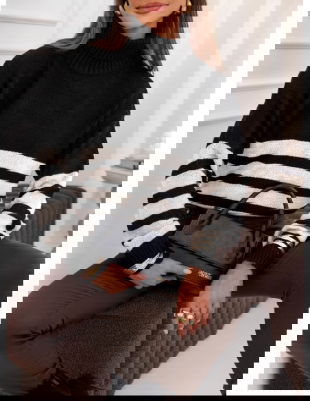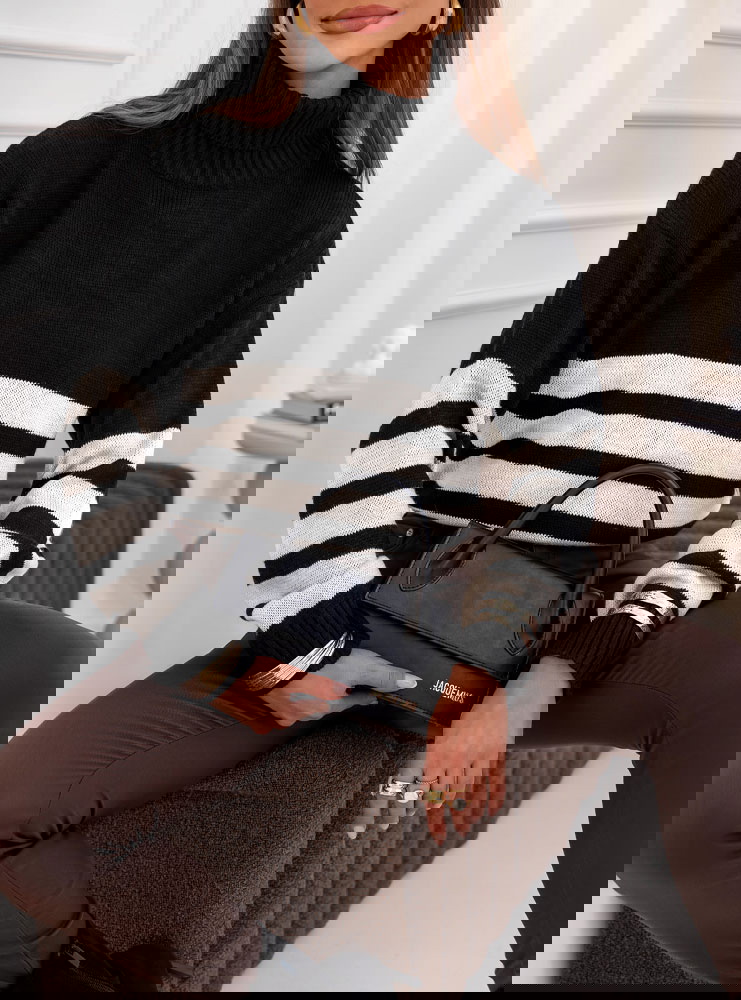 Czarny sweter z golfem w paski Yousra