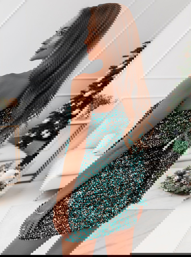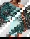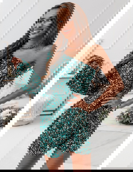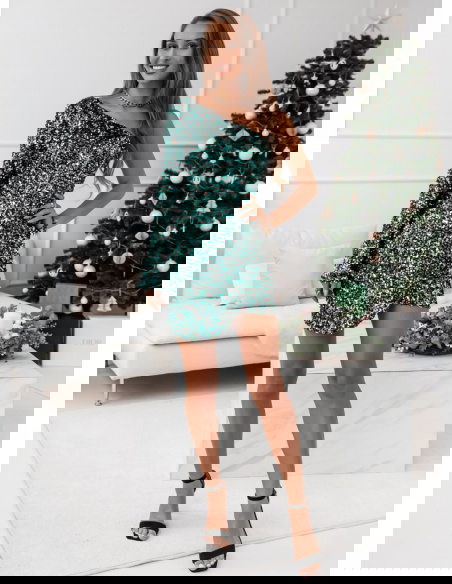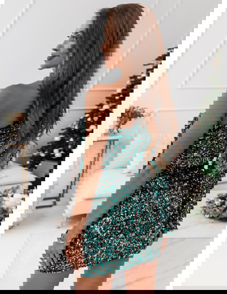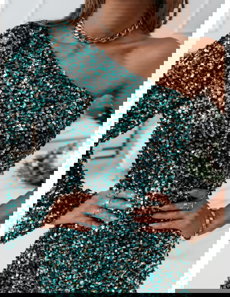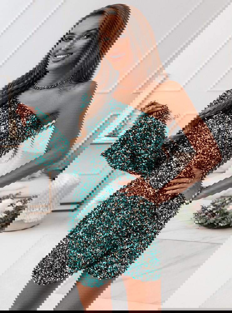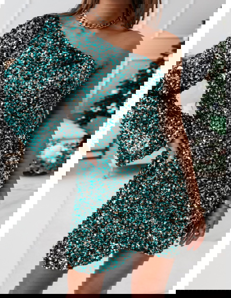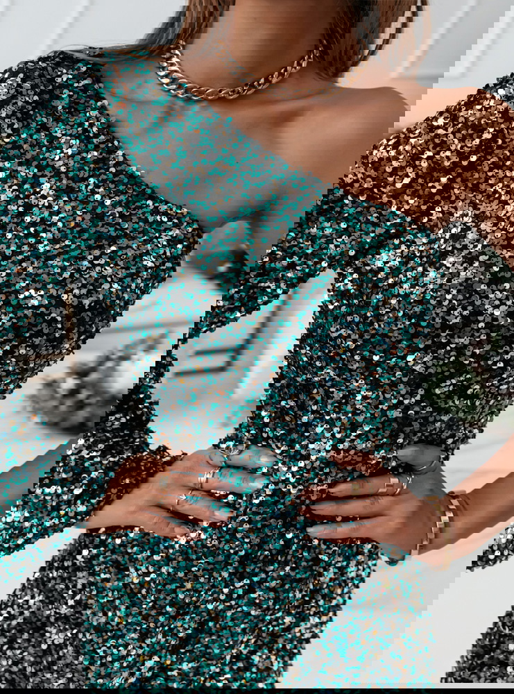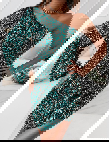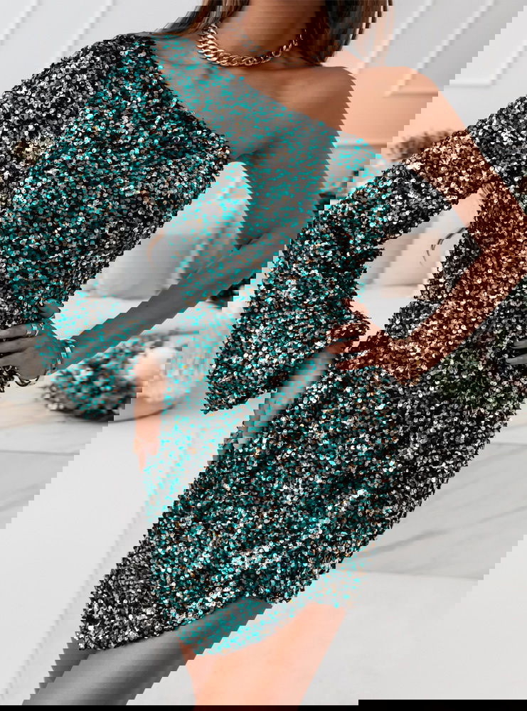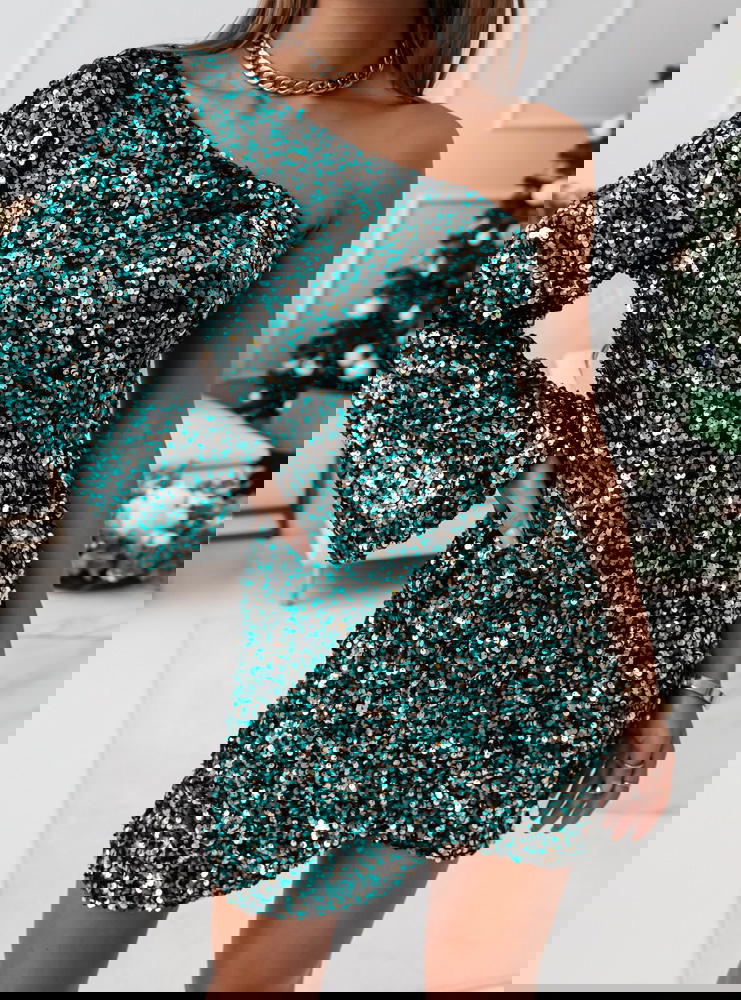 Turkusowa cekinowa sukienka na jedno ramię Kaelie