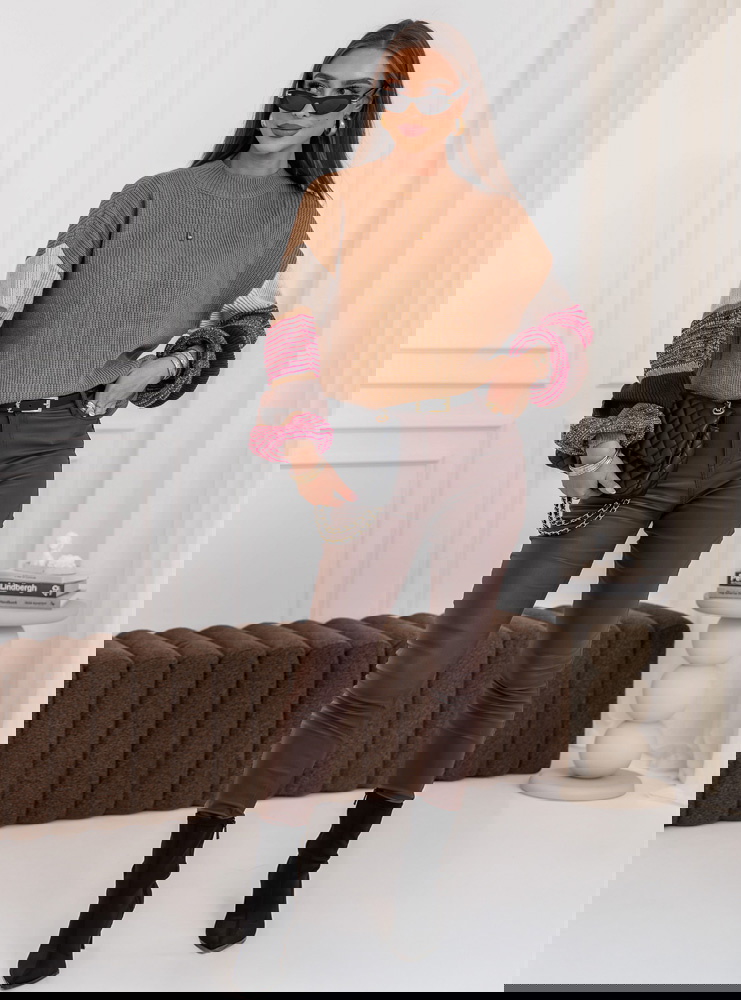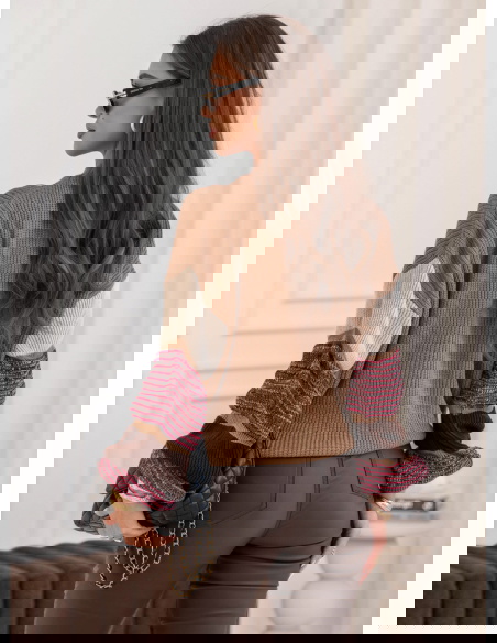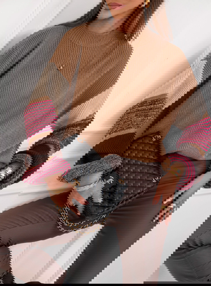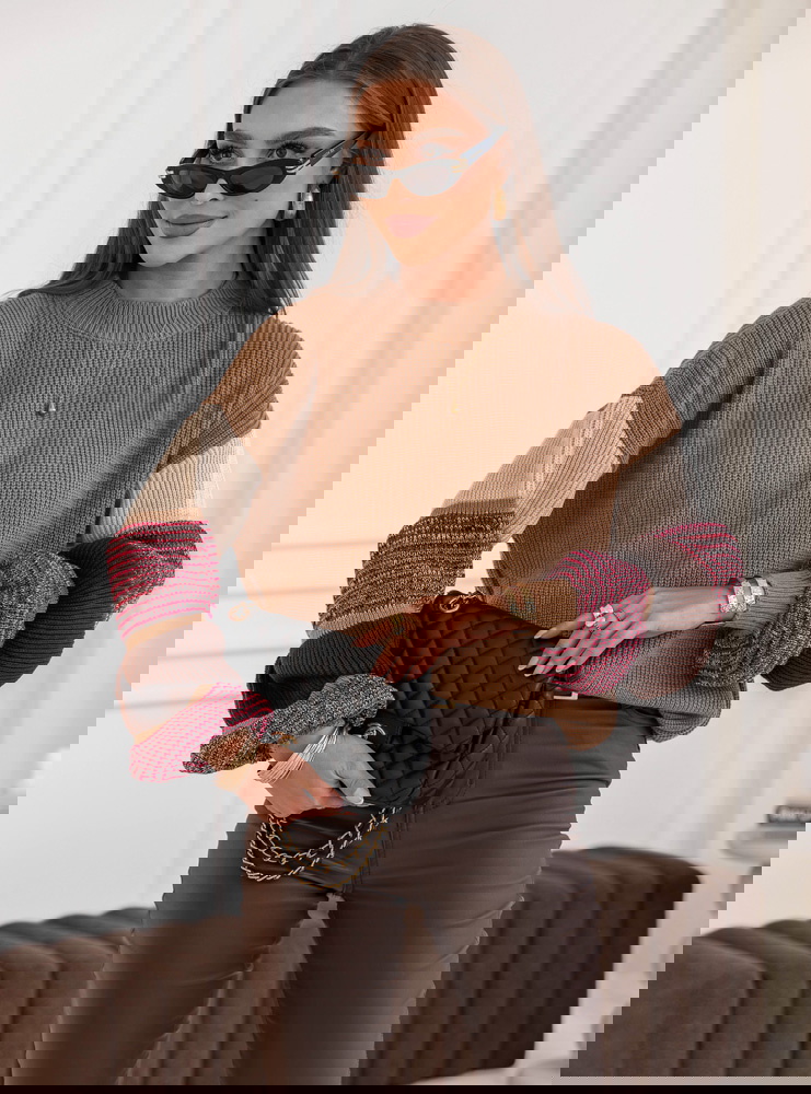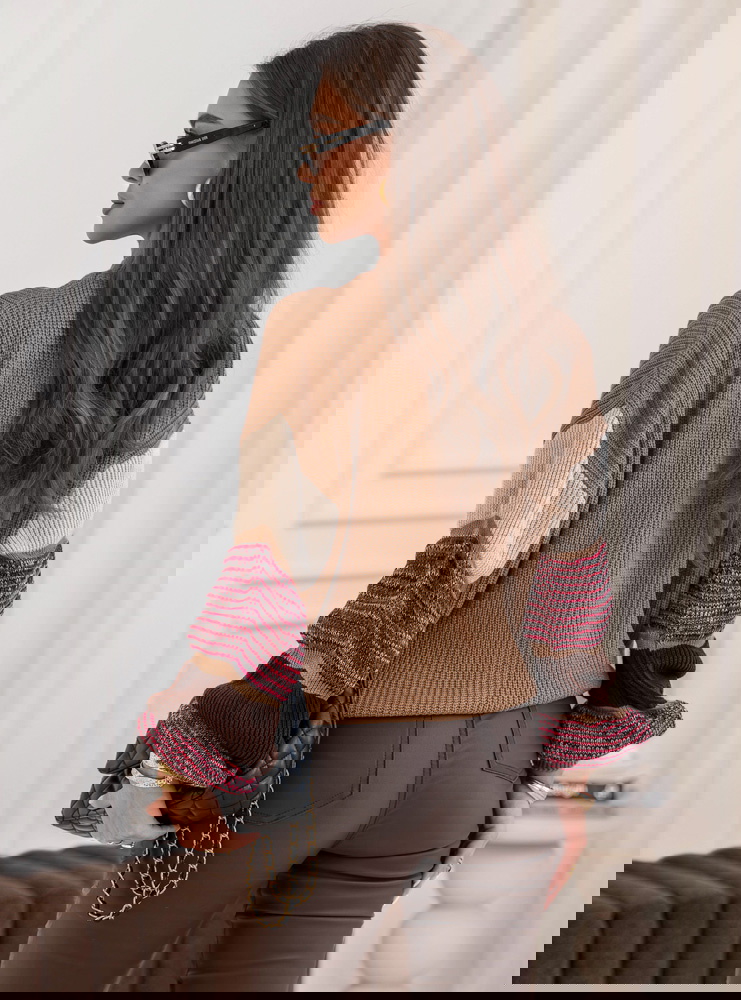 Sweter z ozdobnymi rękawami Oliviyah - mocha mousse to propozycja, która od razu przyciąga wzrok swoim nieoczywistym stylem. To model, który łączy w sobie subtelność i oryginalność w perfekcyjnych proporcjach. Ciepły odcień brązu sprawia, że wpisuje się idealnie w jesienny klimat. Kolorowe akcenty na rękawach dodają mu charakteru i lekkości. To ten typ swetra, który potrafi odmienić całą stylizację jednym gestem. Jego luźny, nieco oversize’owy krój daje poczucie swobody i luzu. Świetnie prezentuje się zarówno w zestawieniu z eleganckimi spodniami, jak i z ulubionymi jeansami. To wybór, który podkreśla indywidualność i wyczucie stylu. Jesienią sprawdzi się doskonale jako baza wielu outfitów. To sweter, który po prostu chce się nosić – dzień po dniu.