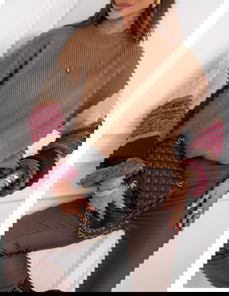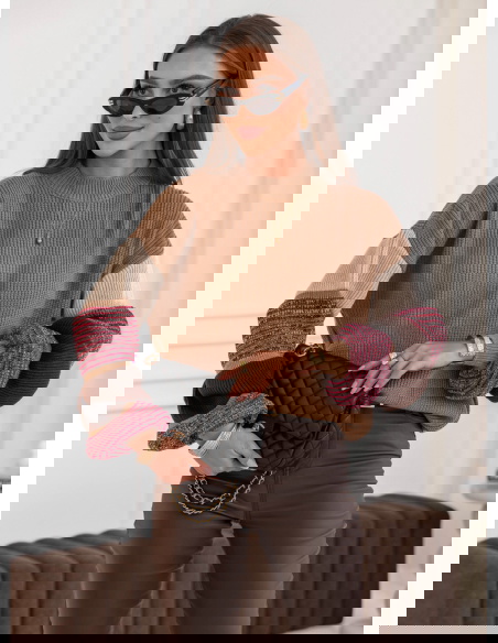 Sweter z ozdobnymi rękawami Oliviyah - mocha mousse