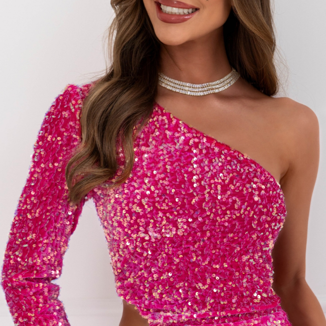 Cekinowa sukienka mini Sanndy - fuksja