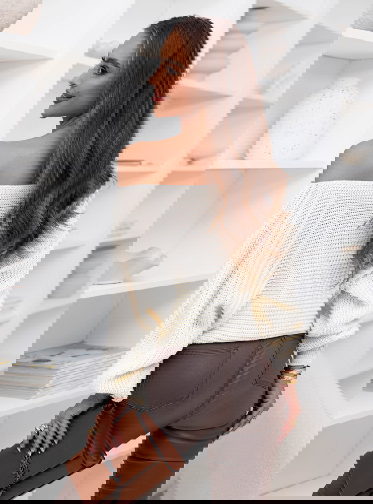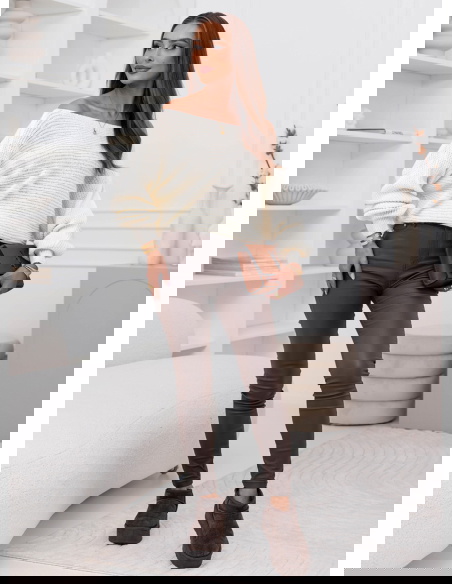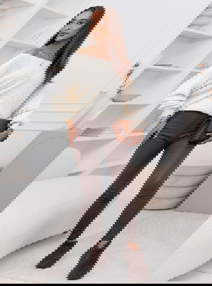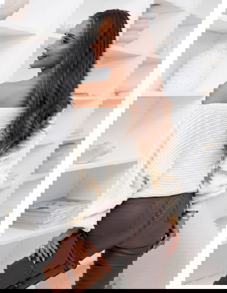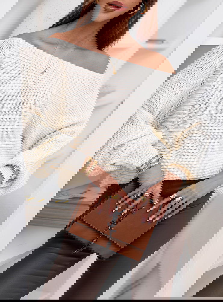 Sweter oversize Magalita - ecru to idealna propozycja na chłodniejsze dni, kiedy liczy się komfort i styl w jednym. Jego luźny, swobodny krój pozwala poczuć się wyjątkowo wygodnie, zachowując jednocześnie modny wygląd. Jasny, ecru odcień doskonale wpisuje się w jesienno-zimowe trendy i pięknie rozświetla każdą stylizację. To model, który otula ciepłem i dodaje przytulnego charakteru każdemu zestawowi. Delikatny dekolt opadający na ramiona nadaje całości subtelnie kobiecego wyrazu. Sweter zachwyca prostotą, która sprawia, że można go nosić na wiele różnych sposobów. To klasyk, który nigdy nie wychodzi z mody i zawsze prezentuje się stylowo. Świetnie wygląda zarówno w casualowych, jak i bardziej dopracowanych stylizacjach. Idealny dla kobiet, które cenią połączenie wygody z elegancją. W tym swetrze każda chwila staje się bardziej przyjemna i stylowa.