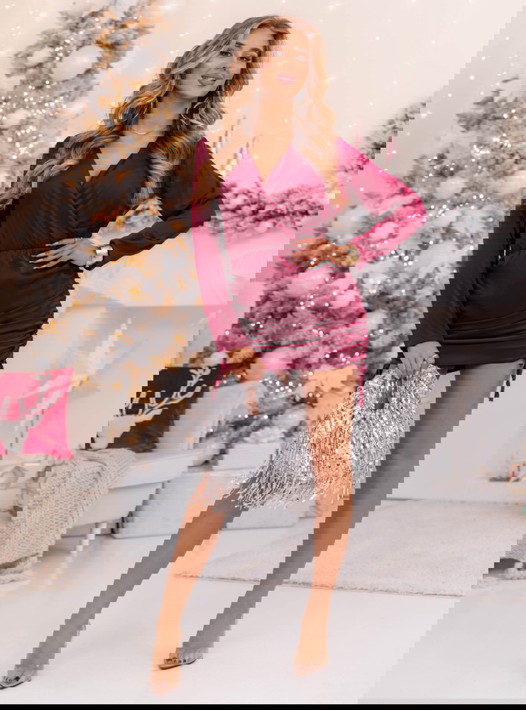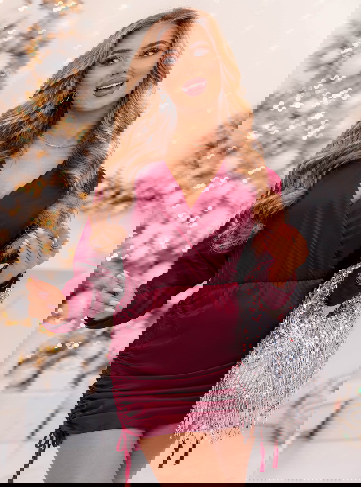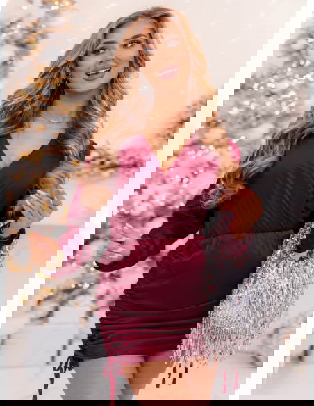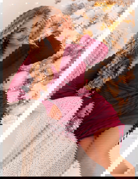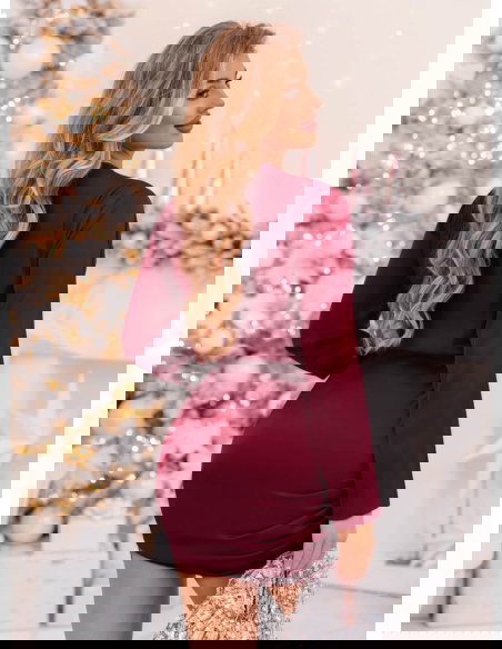 Bordowa satynowa sukienka ze ściągaczami po bokach Paivis to idealna propozycja dla kobiet, które kochają elegancję w wyjątkowo kobiecym wydaniu. Jej głęboki, bordowy odcień przyciąga spojrzenia i doskonale wpisuje się w klimat świątecznych oraz wieczorowych stylizacji. To model, który łączy klasykę z nutą zmysłowości – satynowe wykończenie pięknie odbija światło, nadając stylizacji luksusowego charakteru. Dopasowany krój podkreśla figurę, a delikatne marszczenia po bokach subtelnie modelują sylwetkę. Dekolt w kopertowym stylu wysmukla szyję i eksponuje biżuterię, dodając całości kobiecego wdzięku. To sukienka, która doskonale sprawdzi się podczas wyjątkowych chwil – pełna klasy, ale i lekkości. Idealna na wieczorne wyjścia, gdy chcesz wyglądać elegancko, ale czuć się swobodnie. To kwintesencja szyku w nowoczesnym wydaniu, w której każda kobieta poczuje się wyjątkowo i pewnie.