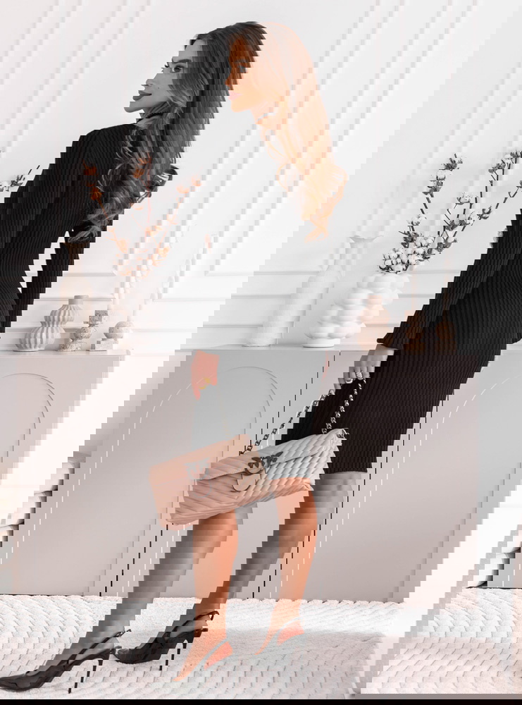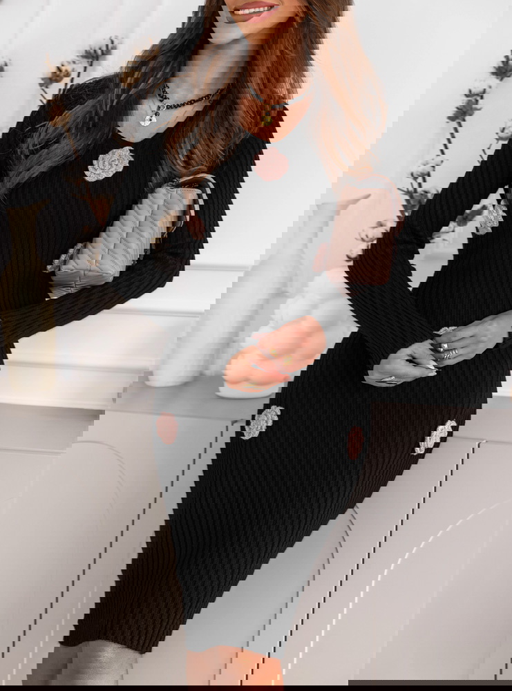 Czarna sukienka swetrowa z ozdobnymi kwiatkami Deaesta to idealne połączenie klasyki i delikatnych, kobiecych akcentów. Jej dopasowany fason pięknie podkreśla sylwetkę, a jednocześnie zapewnia komfort i swobodę noszenia. Ozdobne kwiatki w kontrastowym odcieniu dodają całości wyjątkowego charakteru i subtelnej elegancji. To model, który doskonale łączy prostotę z modnym detalem, tworząc harmonijną, jesienną propozycję. Czerń nadaje sukience ponadczasowy wdzięk, a róże przełamują jej klasyczny ton, wprowadzając nutę romantyzmu. To propozycja, która sprawdzi się zarówno na co dzień, jak i w bardziej eleganckich sytuacjach. Stylowa, kobieca i efektowna – podkreśla urok w najpiękniejszy sposób. Świetnie wygląda z klasycznymi botkami, ale też z kozakami w chłodniejsze dni. W tej sukience każda kobieta może poczuć się wyjątkowo, nie rezygnując z wygody. To doskonały wybór na sezon jesienno-zimowy, który zachwyca subtelnym urokiem.
