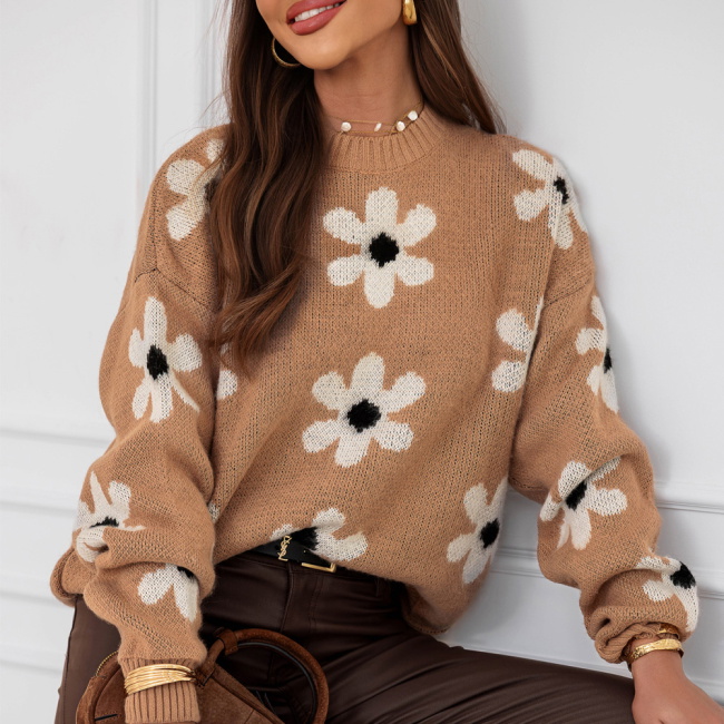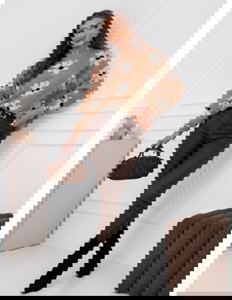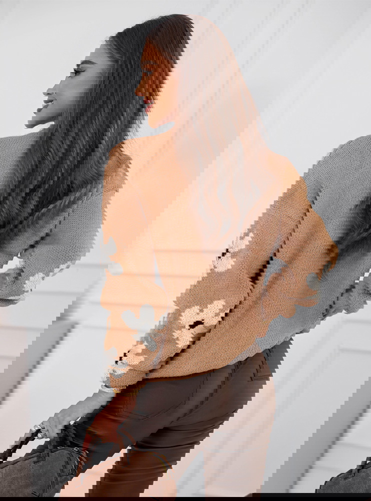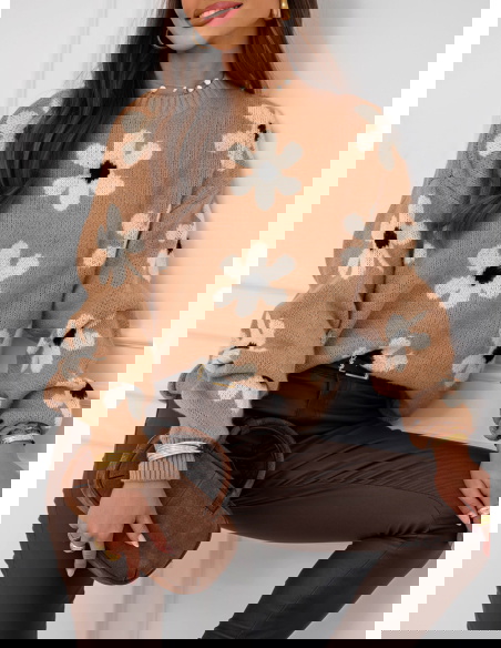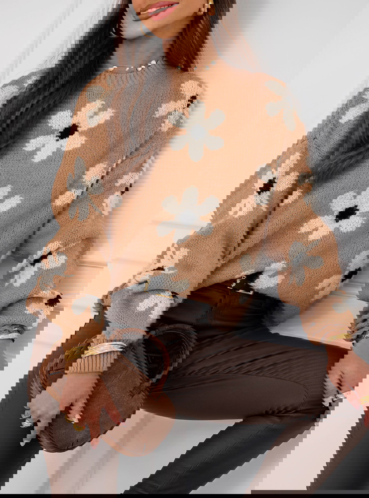 Sweter w kwiaty Dalya - mocha mousse to świetny wybór na co dzień – do pracy, na spotkanie z przyjaciółkami czy weekendowy spacer. Sprawdzi się również w nieco bardziej casualowych stylizacjach, w połączeniu z jeansami lub skórzanymi spodniami.