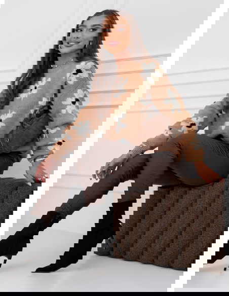 Sweter w kwiaty Dalya - mocha mousse to propozycja, która łączy w sobie ciepło jesiennego klimatu z nutą kobiecej lekkości. To model, który od razu przyciąga wzrok swoim uroczym wzorem i przytulnym charakterem. Ciepły odcień mocha mousse idealnie wpisuje się w jesienno-zimową paletę barw, dodając stylizacjom miękkości i elegancji. Duże, kontrastowe kwiaty wprowadzają odrobinę radości i świeżości, tworząc niepowtarzalny efekt. Sweter ma luźniejszy krój, dzięki czemu wygląda modnie i zapewnia pełną swobodę ruchów. Jego fason delikatnie otula sylwetkę, tworząc stylowy, niewymuszony look. To idealny wybór na dni, kiedy chcesz połączyć wygodę z wyrazistym stylem. Wyróżnia się subtelnym urokiem i dziewczęcym wdziękiem, który idealnie pasuje do jesiennej aury. Każdy szczegół został zaprojektowany tak, by całość prezentowała się harmonijnie i modnie. To sweter, który potrafi odmienić każdą stylizację i nadać jej wyjątkowego charakteru.