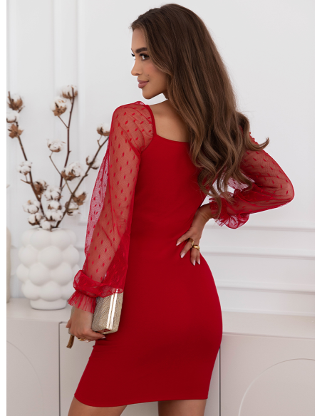 Malinowa dopasowana sukienka z tiulowymi rękawami Kleenie
